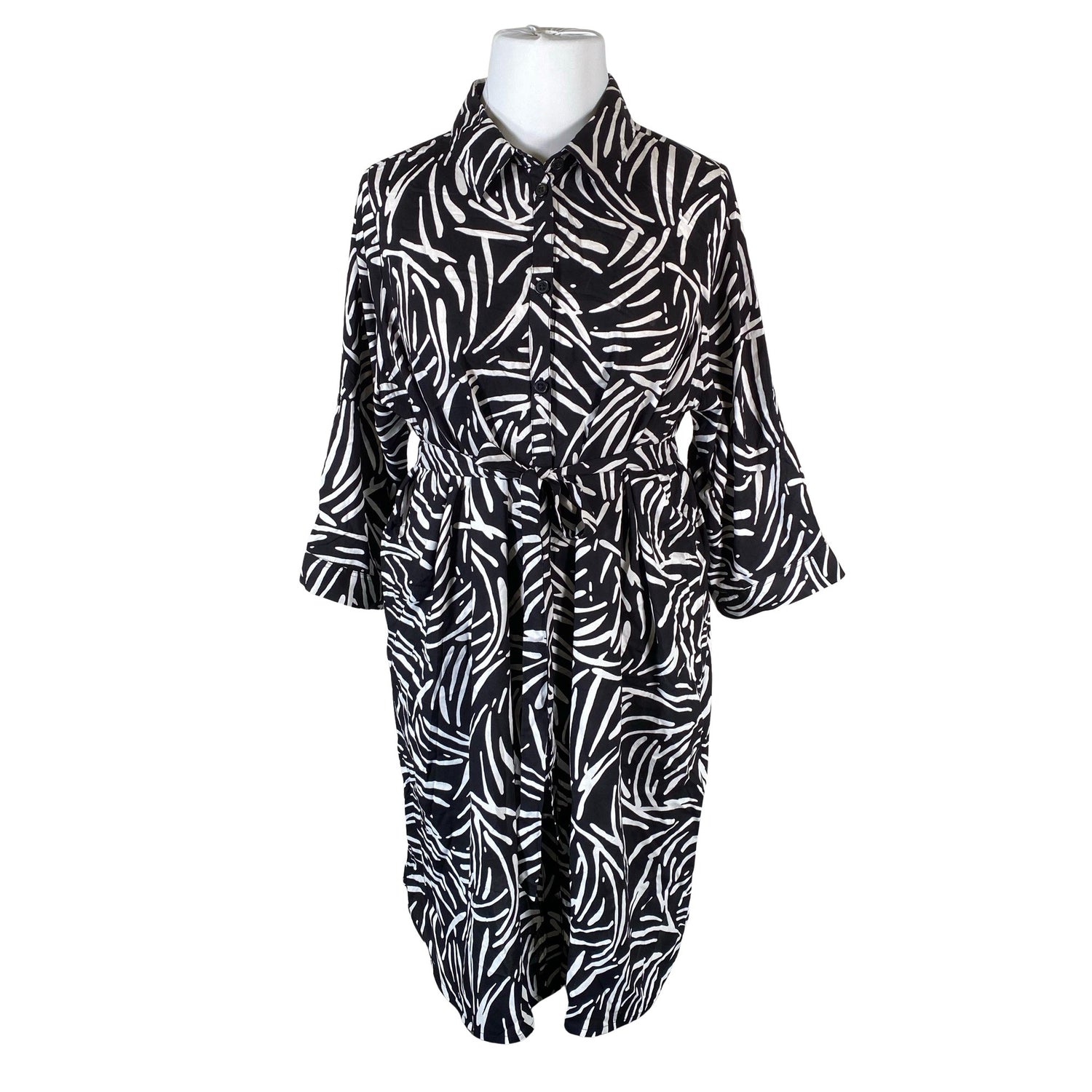 Viskoosia. Edessä napit. Tuotteeseen kuuluu vyö.