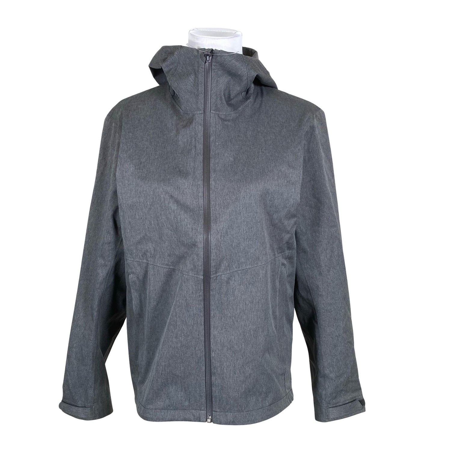 Water resistant -merkintä. Windproof -merkintä. Breathable -merkintä. Stretch-merkintä. Tuotteen taskuissa on vetoketjut. Tuotteessa ei ole vuorta. Tuotteessa on kiristysnyöri helmassa. Materiaali joustaa hieman. Tuotteen pinnassa on hieman pesu-/käyttökulumaa. Yleisilme on siisti.