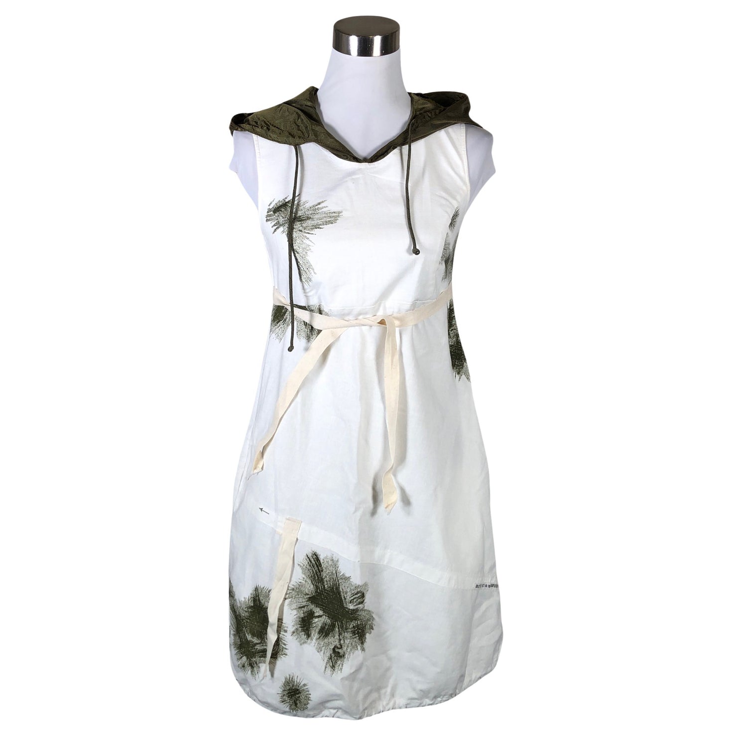Tuotteessa on kiristysnyöri helmassa. Tuotteessa on huppu. Sivusaumassa on vetoketju. Tuotteen pinnassa on hieman tummentumaa. Yleisilme on siisti.
