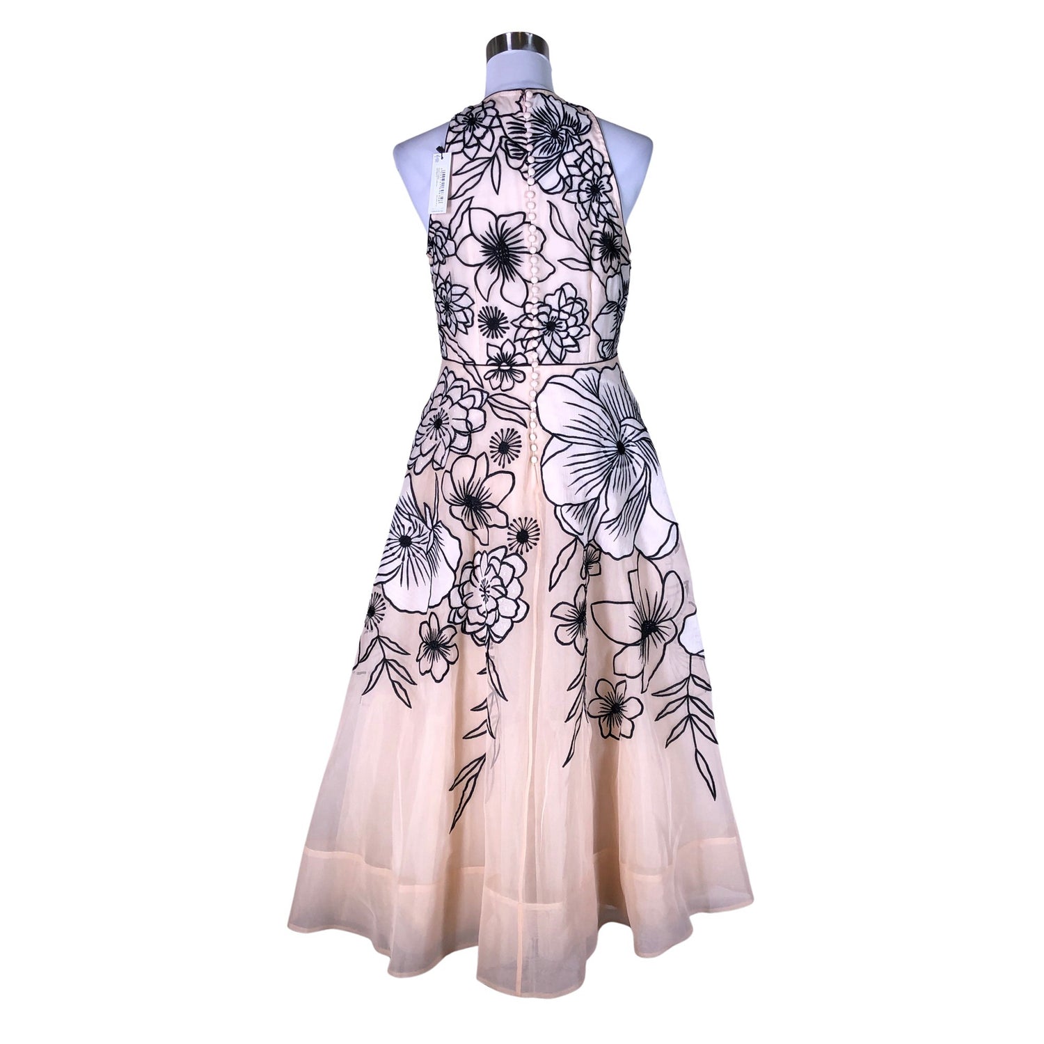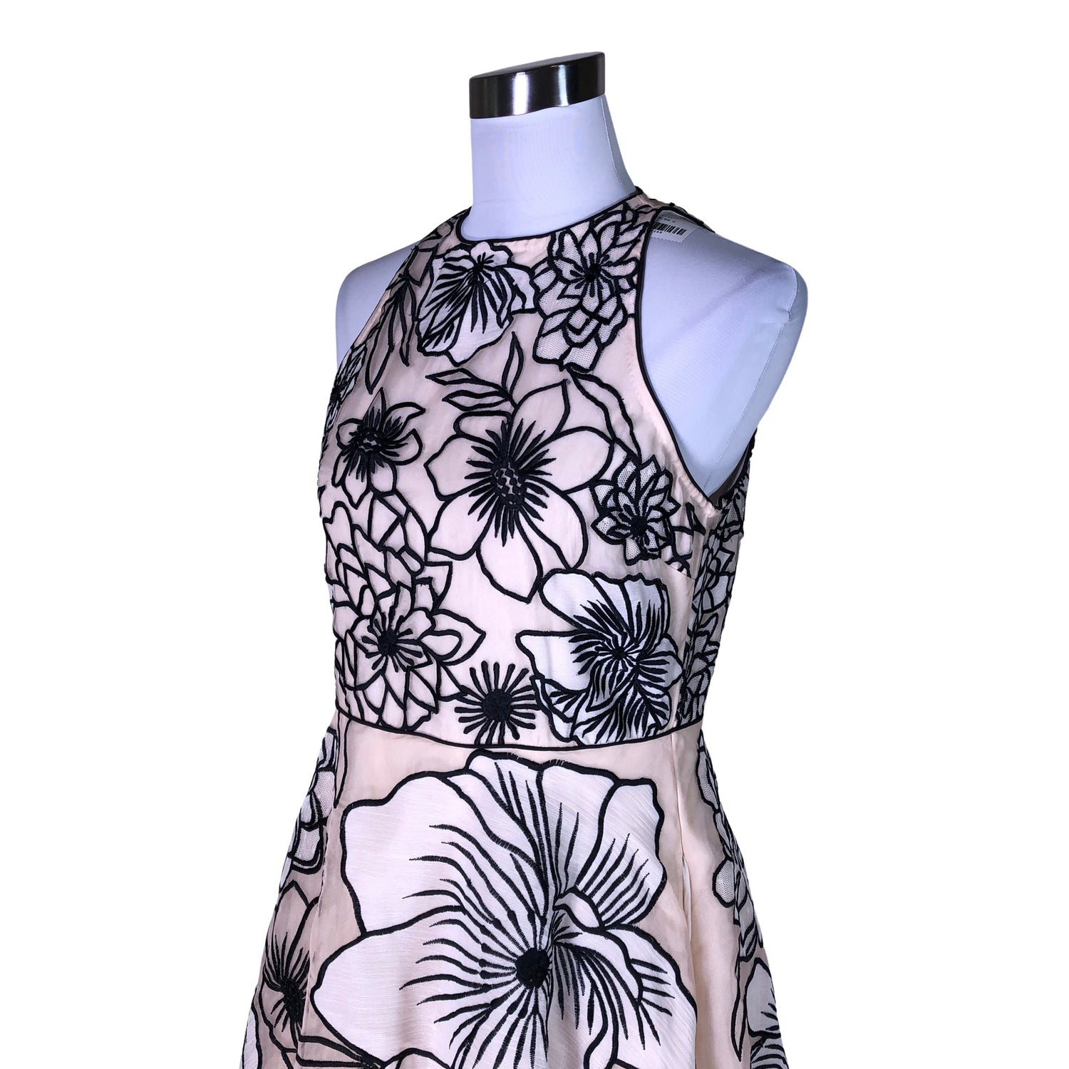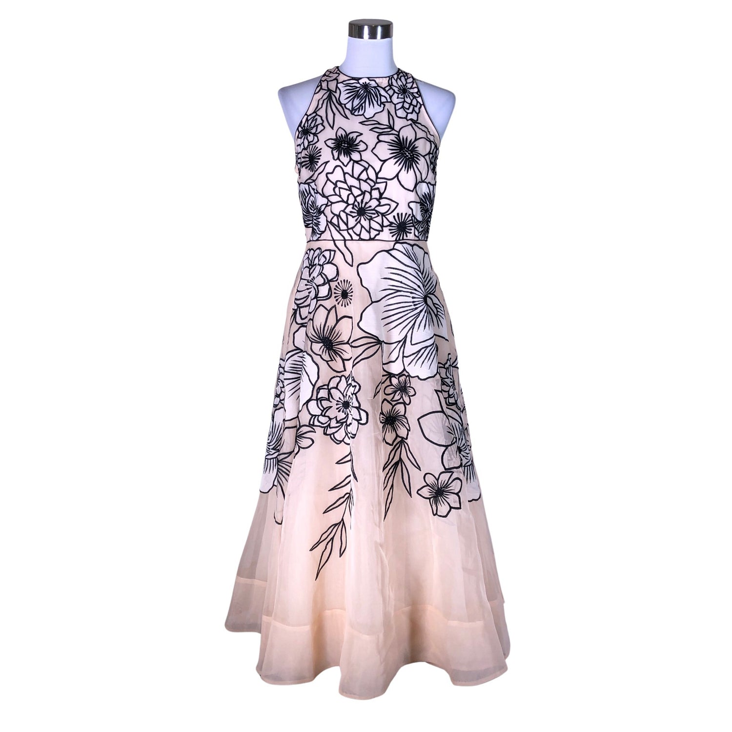 Malli: Appplique Organdie Halter Maxi. Vetoketju takana. Vaatteessa on taskut.