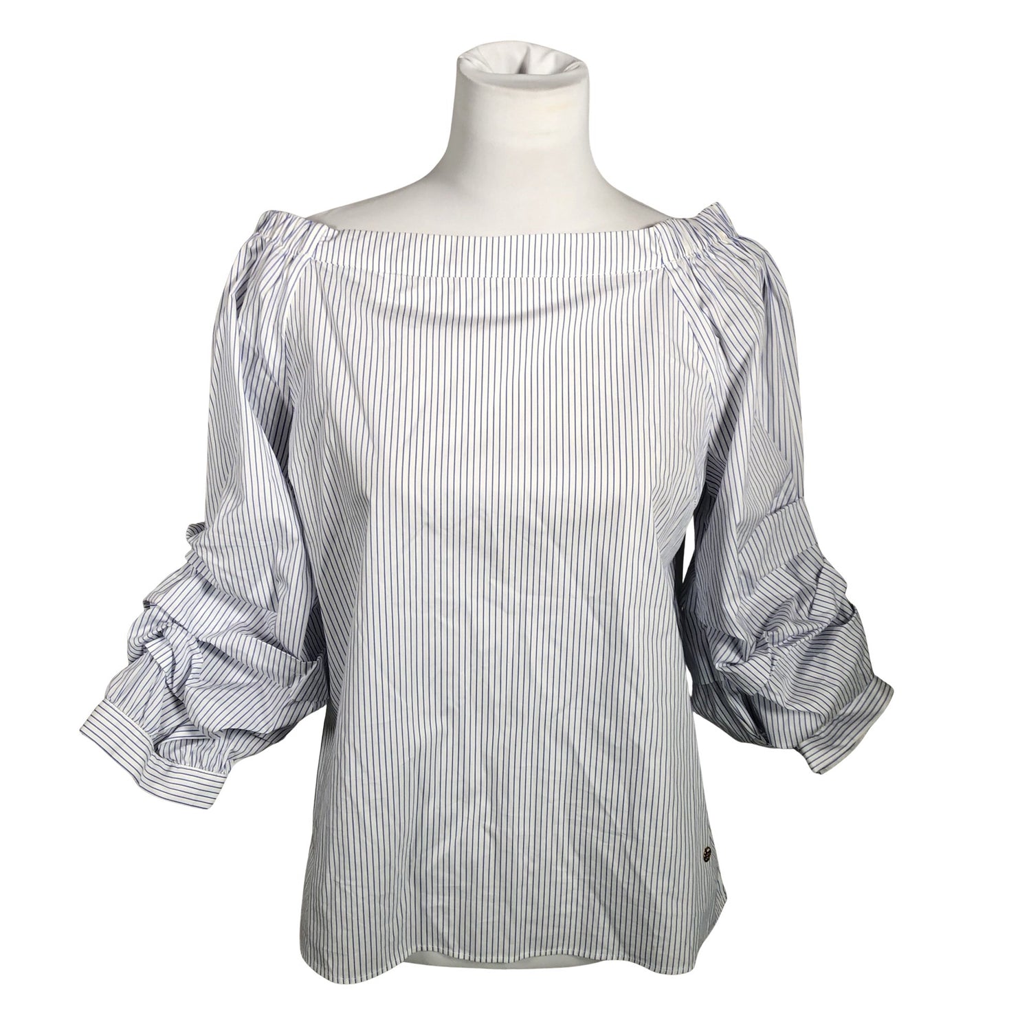 Materiaali ei jousta. Vajaamittaiset hihat. Tuotteen pinnassa on muutama haalea tahra. Tuote on muilta osin hyvässä kunnossa.