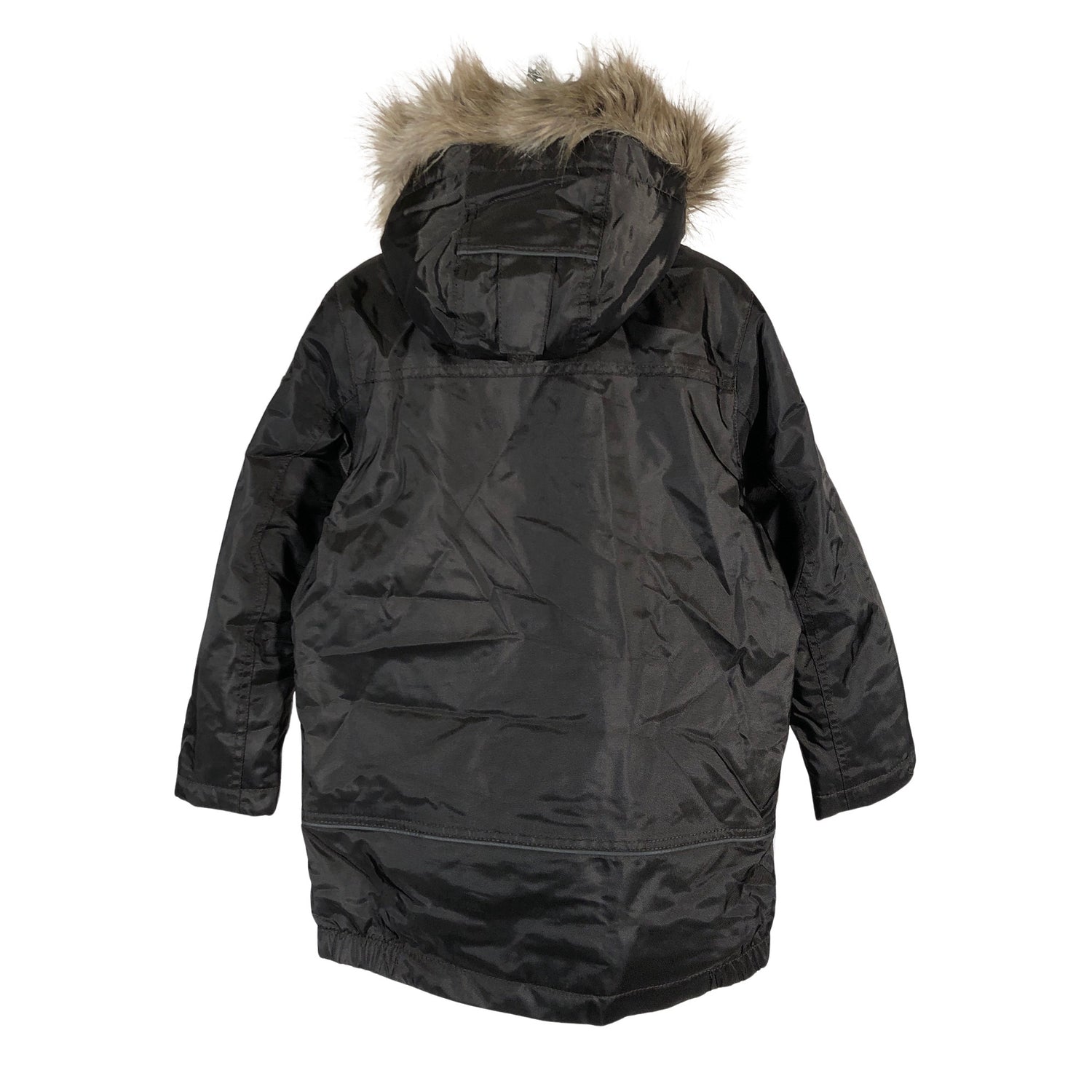 Materiaali ei jousta. Irrotettava huppu. Irrotettava karvakaulus.