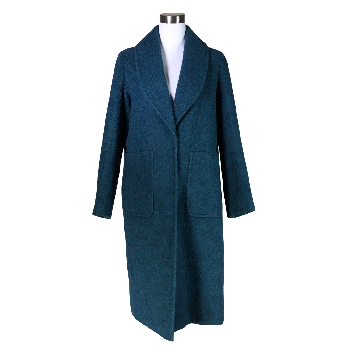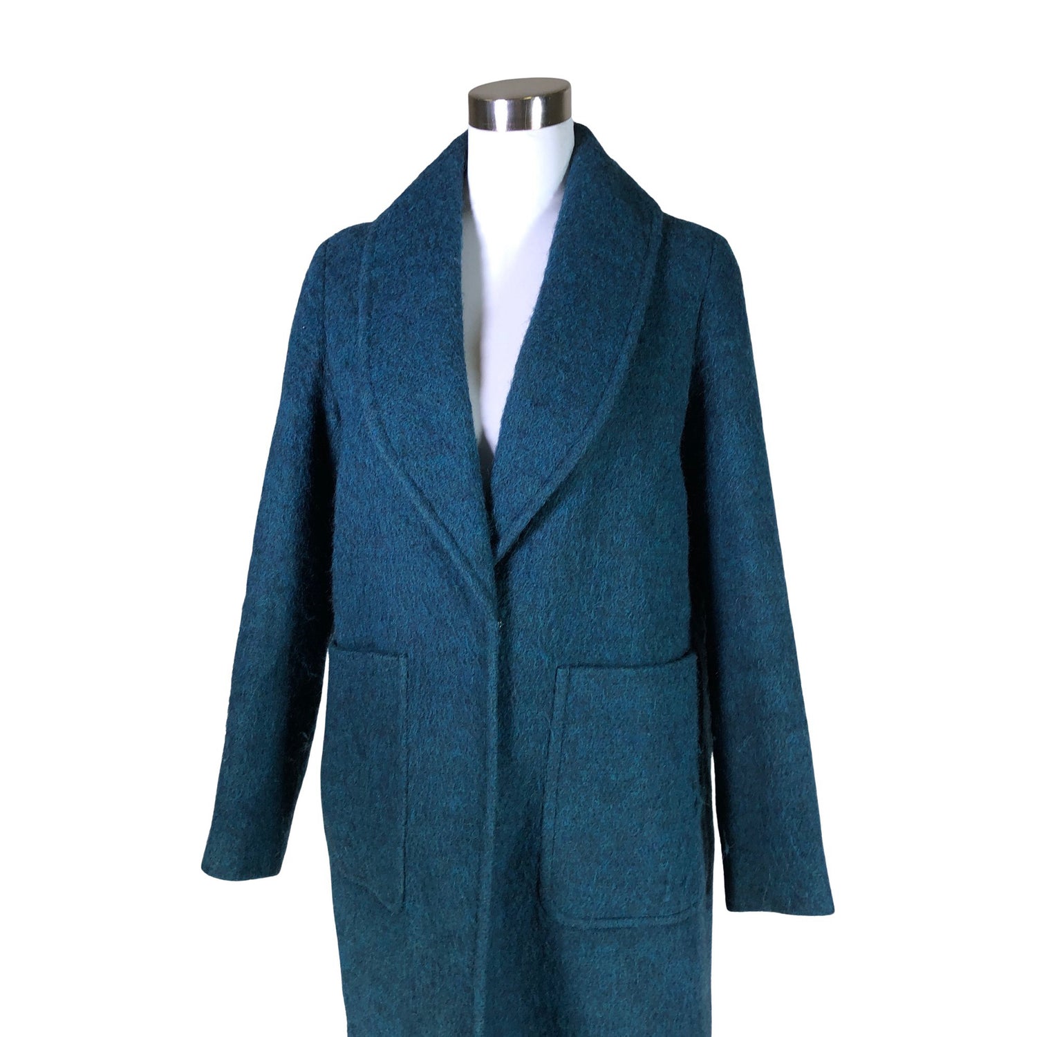 Villasekoitetta. Tuotteessa on ohut vuori. Väri: petrooli. Nappien/ neppareiden ompeleissa on löystymää. Tuotteen pinnassa on hieman pesu-/käyttökulumaa. Yleisilme on siisti.