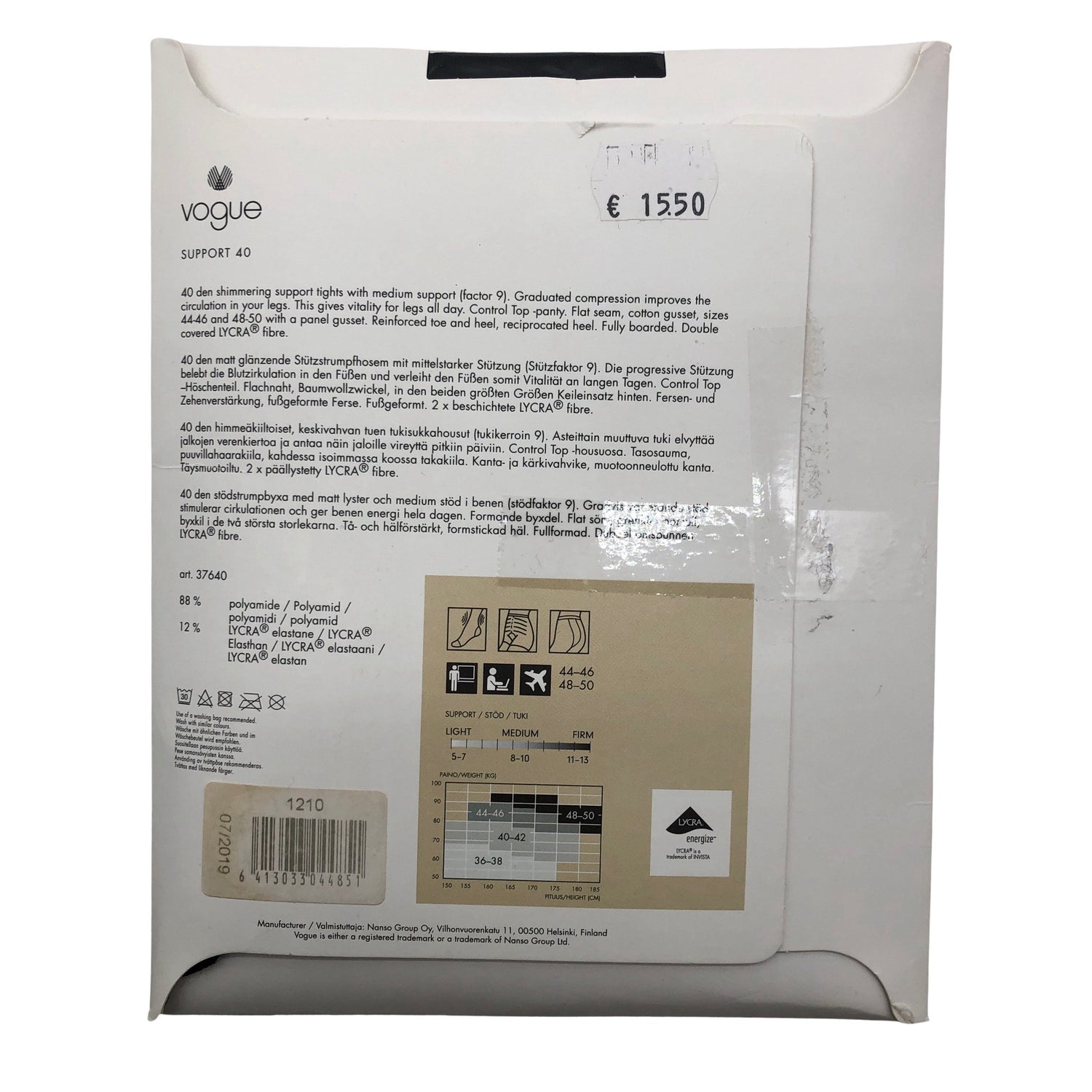 Sh# 15,50 €. Tuotteessa on merkintä: 40 den.