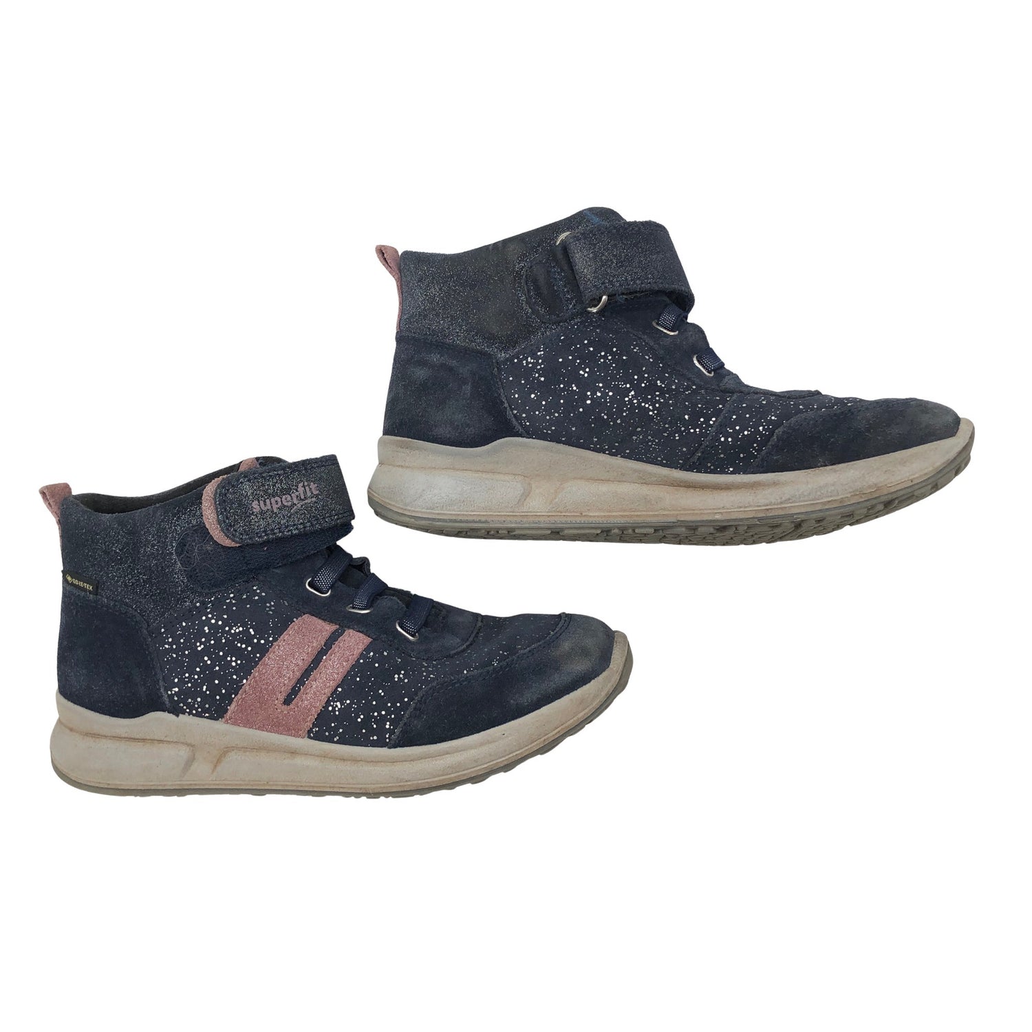 SuperFit Välikausikengät, koko 33. Gore-Tex -merkintä. Tuotteessa on tarrakiinnitys. Tuotteen pinnassa on kimalletta. Tuotteen pinnassa on pesu-/käyttökulumaa. Yleisilme on siisti.