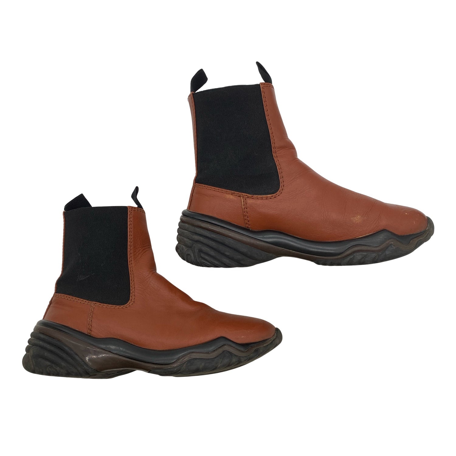 Materiaalitieto puuttuu. Todennäköisesti nahkaa. Varsi joustaa hieman. Budjettilöytö. Tuotteen pinnassa on pesu-/käyttökulumaa. Yleisilme on siisti.