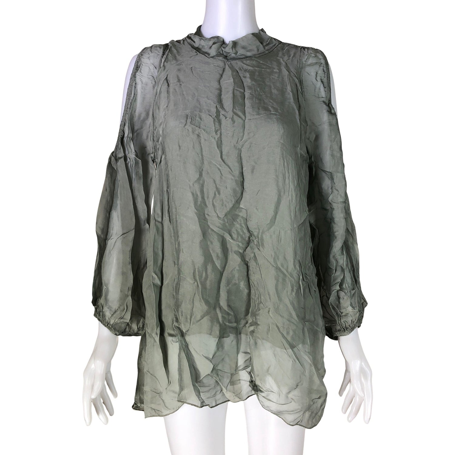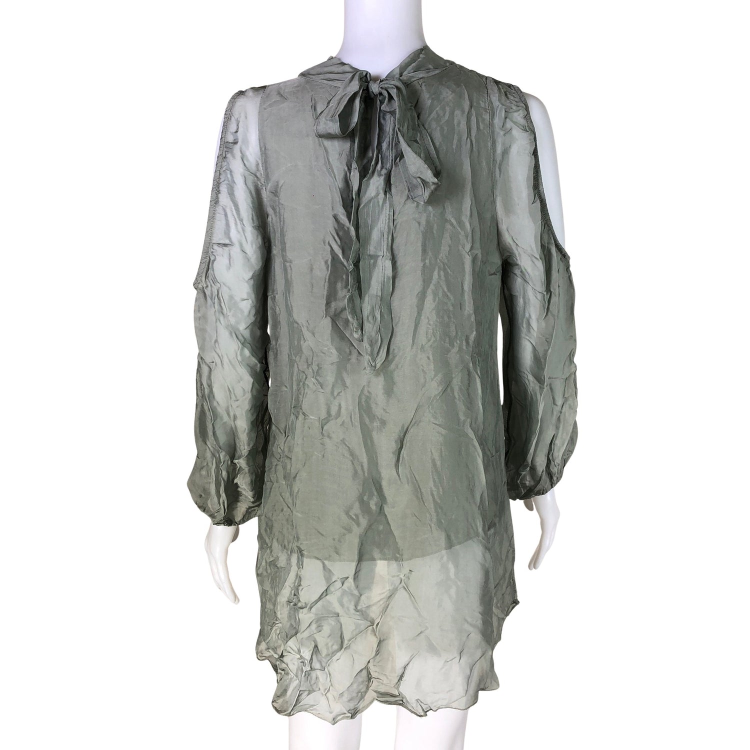 Ohutta materiaalia. Materiaali ei jousta. Avoimet olkapäät. Tuotteen pinnassa on aavistus pesu-/käyttökulumaa. Yleisilme on siisti.