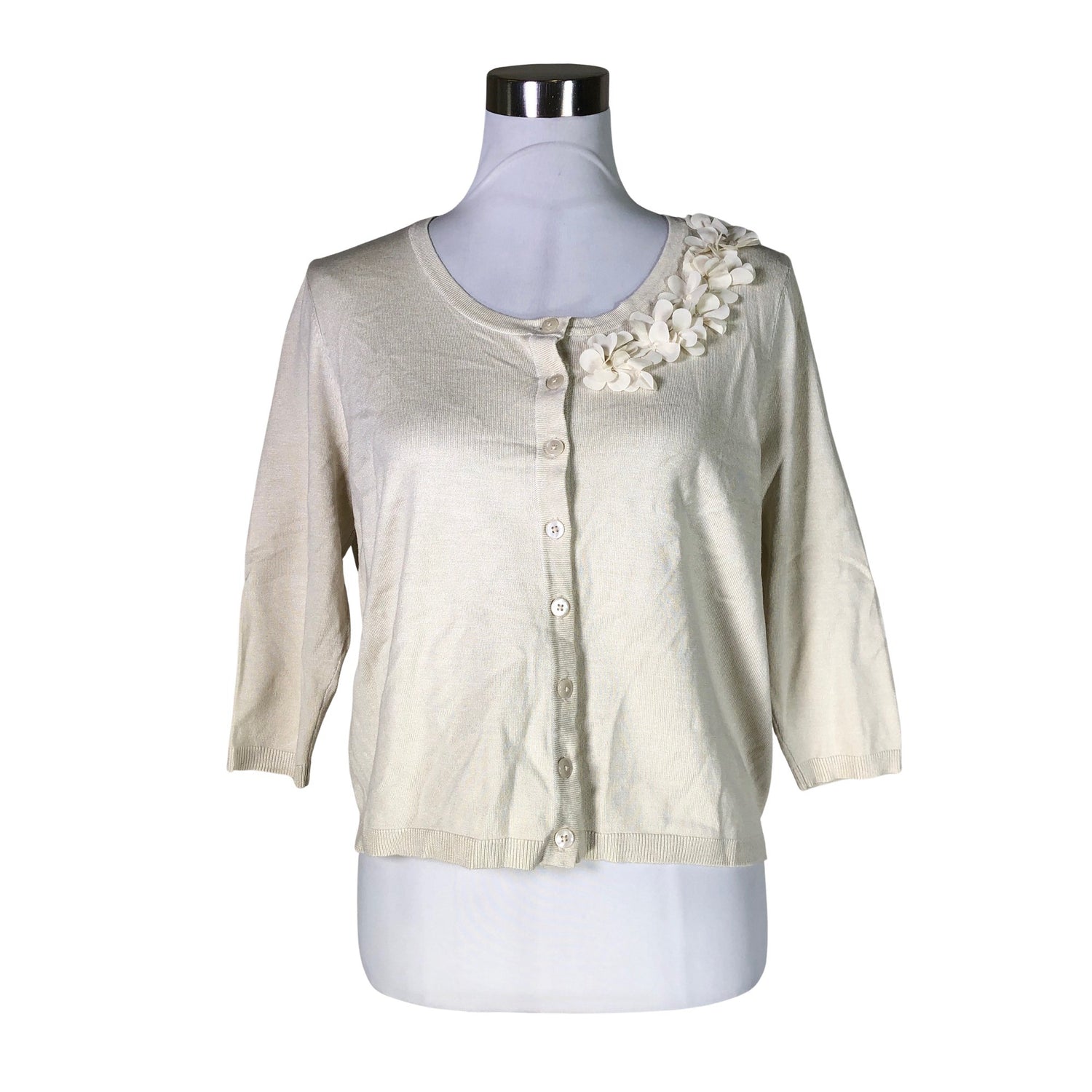Materiaali joustaa. Edessä napit. Vajaamittaiset hihat.