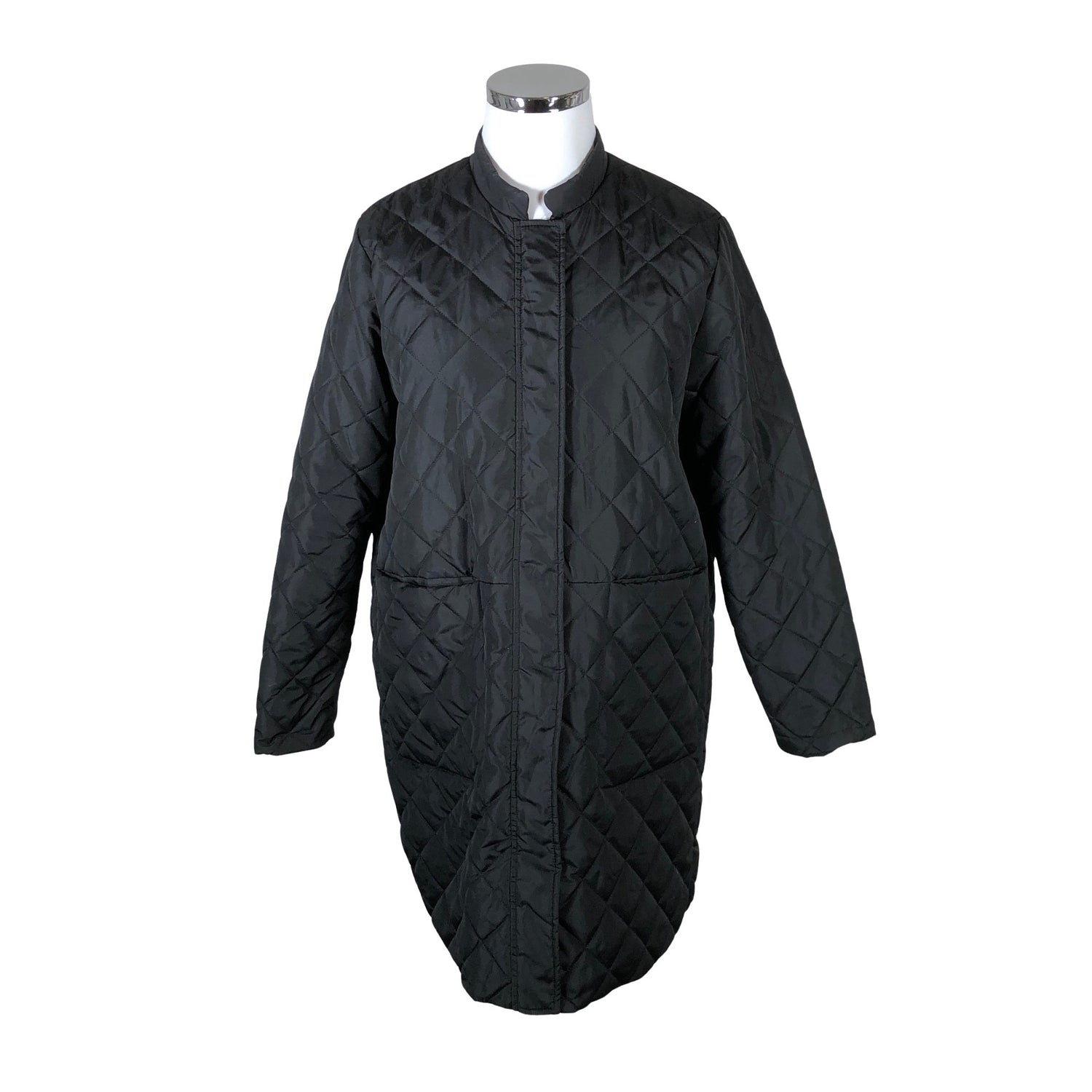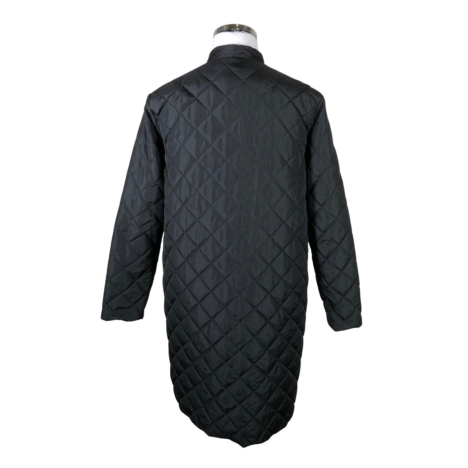 Malli: Fillipa Quilted Coat Black. Kevyesti topattu. Sivusaumoissa on halkiot.