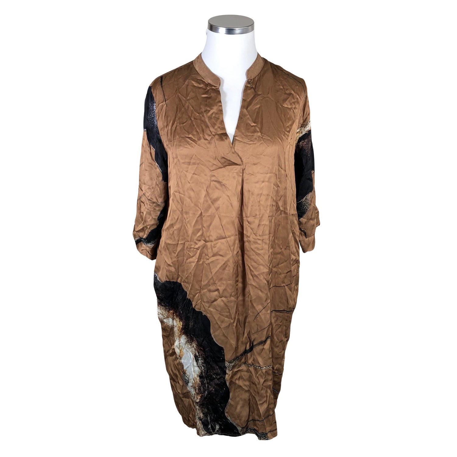 Mallisto: Drops by Nü Denmark. Langassa on kiiltoa. Vaatteessa on taskut. Materiaali ei jousta. Tuotteen pinnassa on hieman pesu-/käyttökulumaa. Yleisilme on siisti.