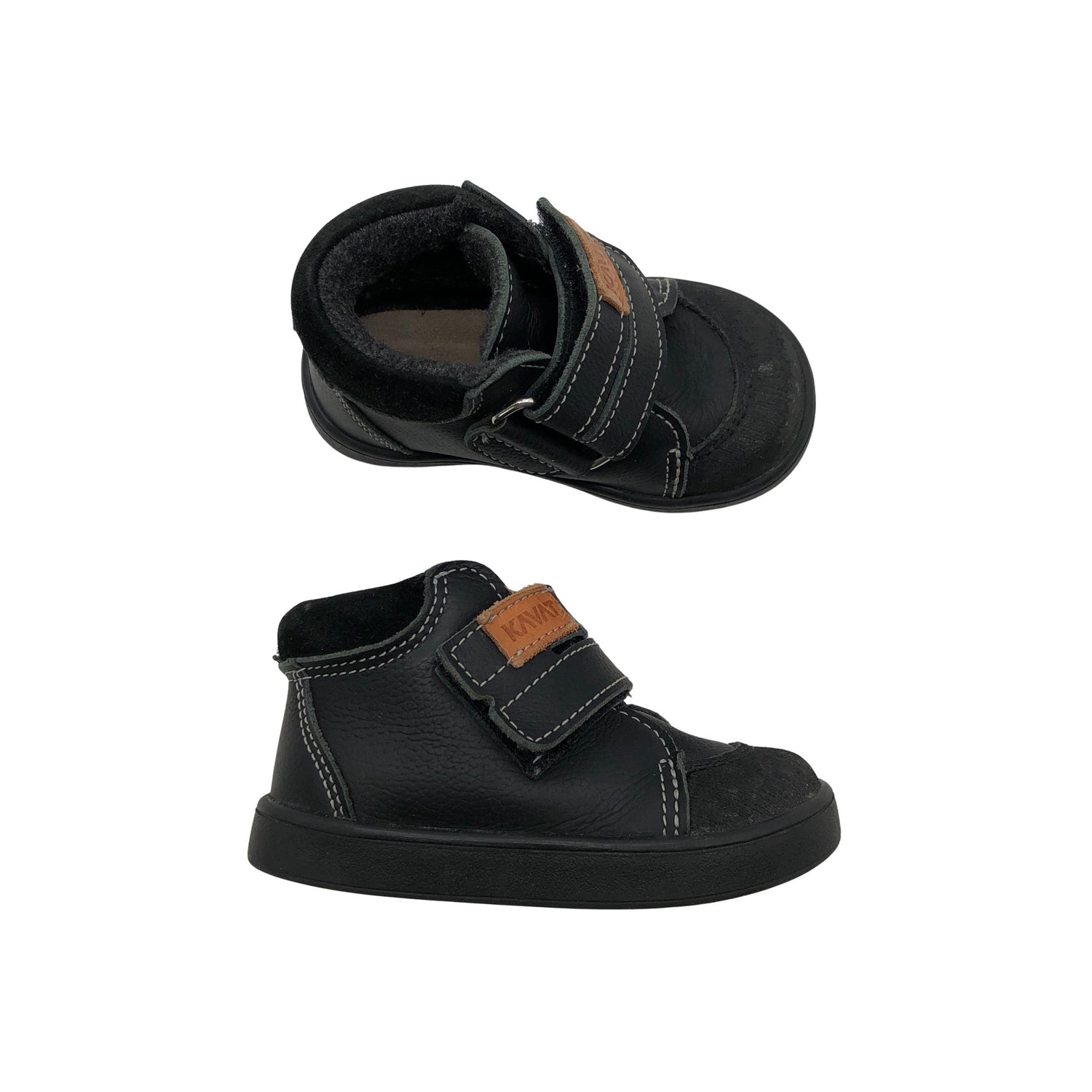 Kavat Talvikengät, koko 21. Huopavuori. Tuotteessa on tarrakiinnitys. Kenkien kärjissä on kulumaa. Yleisilme on siisti.