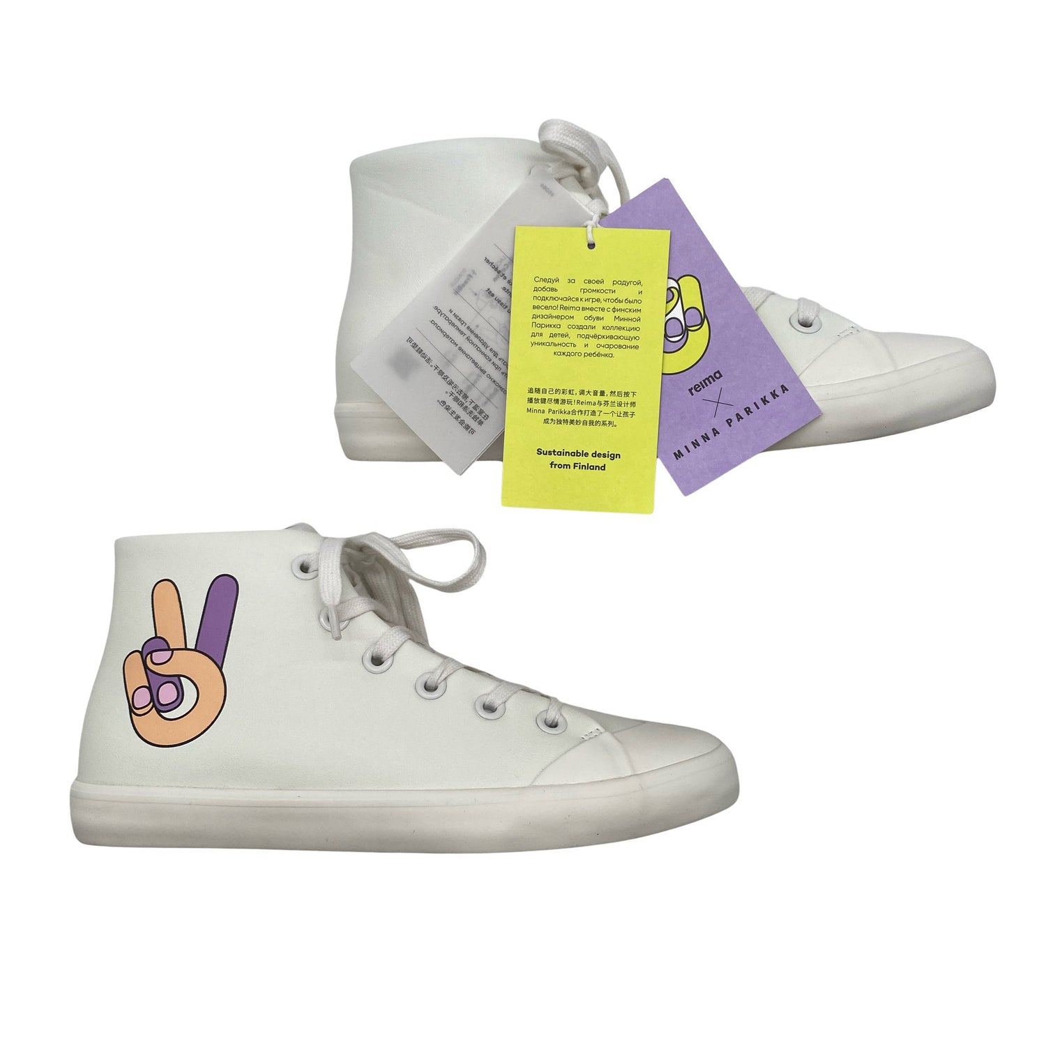 Sh# 89,95 €. Mallisto: Reima X Minna Parikka. Malli: Peace High-top. Mukana alkuperäinen pakkaus.