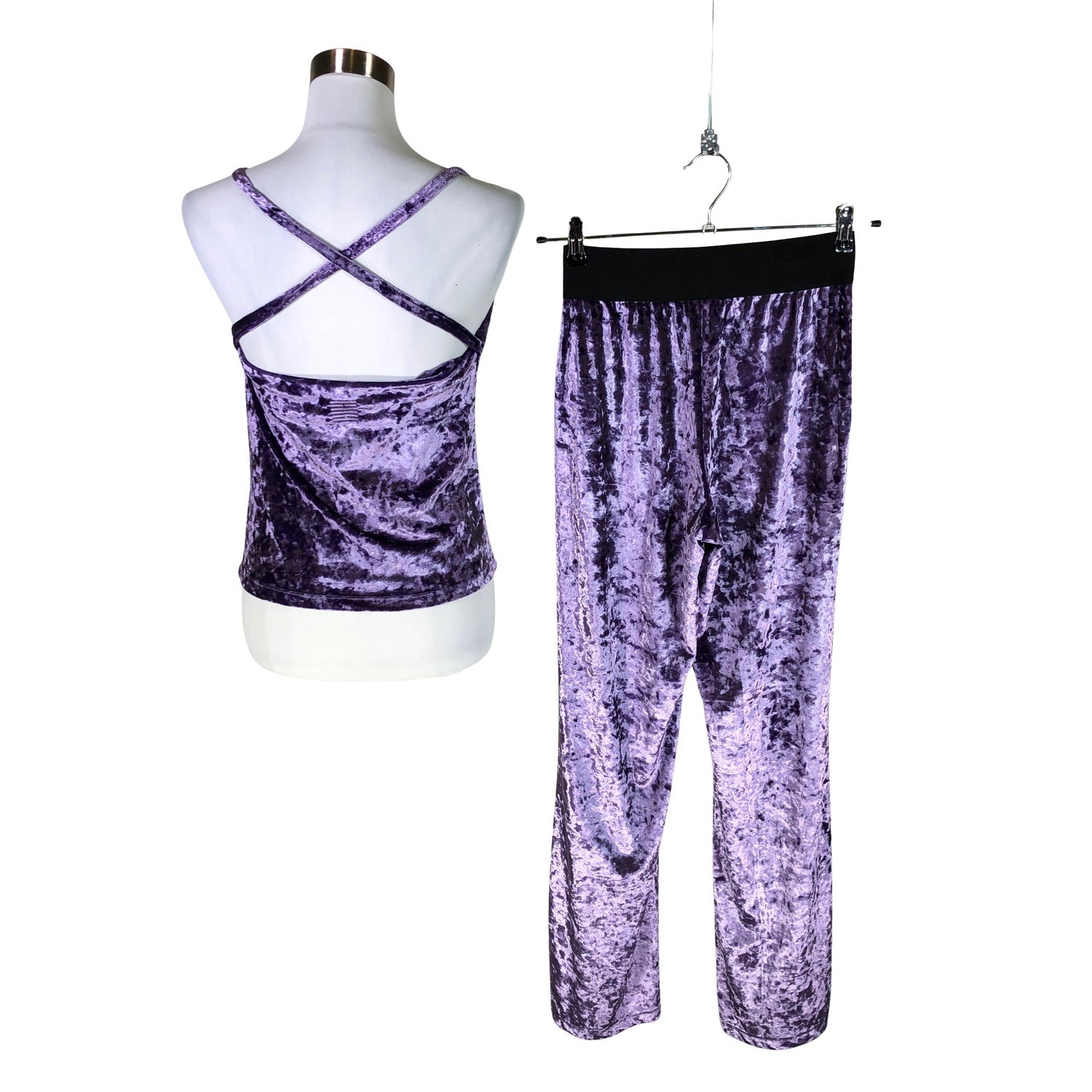Vaatteen mitta: rinnanympärys 1/2 mitta (kainalo-kainalo): 43 cm. Olka-helma pituus: 57 cm. Setti. Malli: Velvet Pants. Velouria.