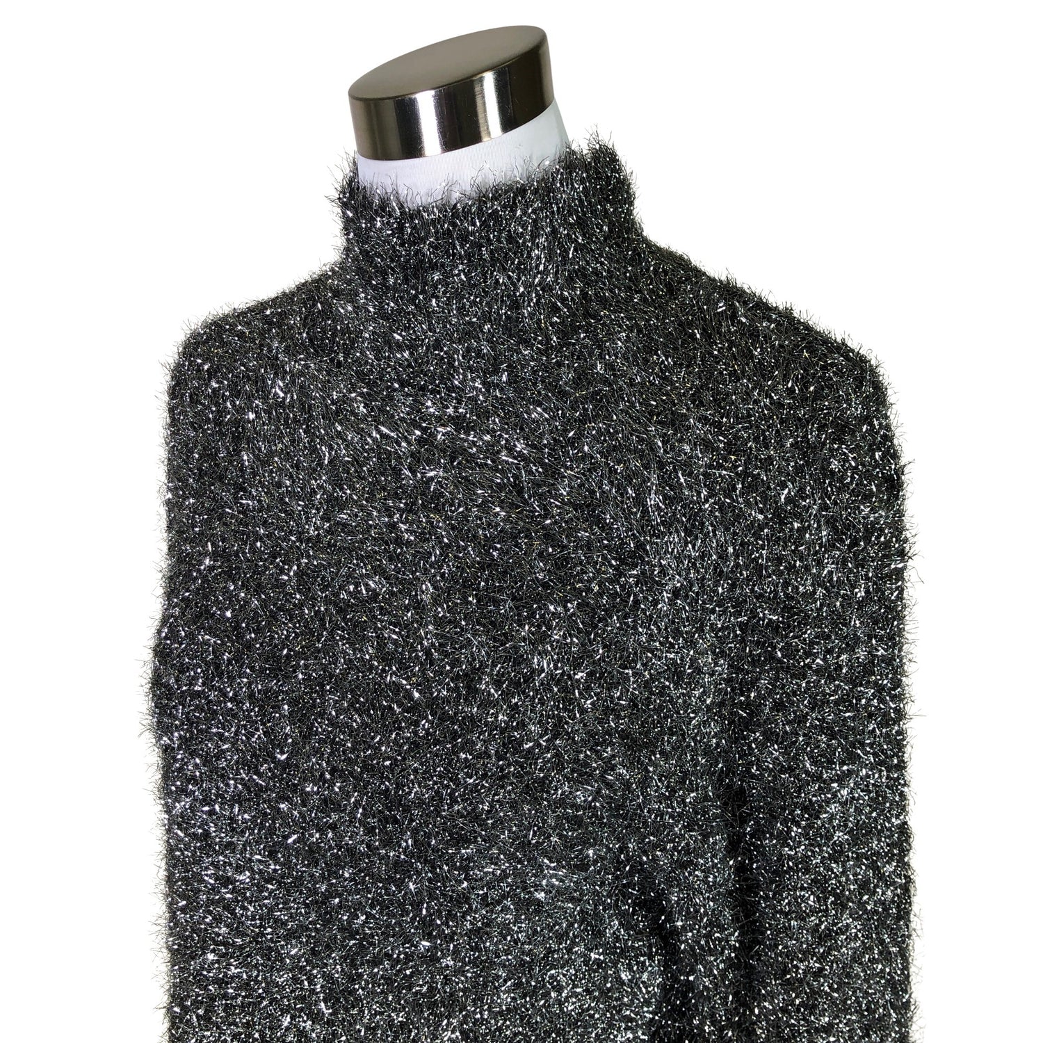Savupiippukaulus. Materiaali joustaa. Lyhyt malli. Tuotteen pinnassa on kimalletta.