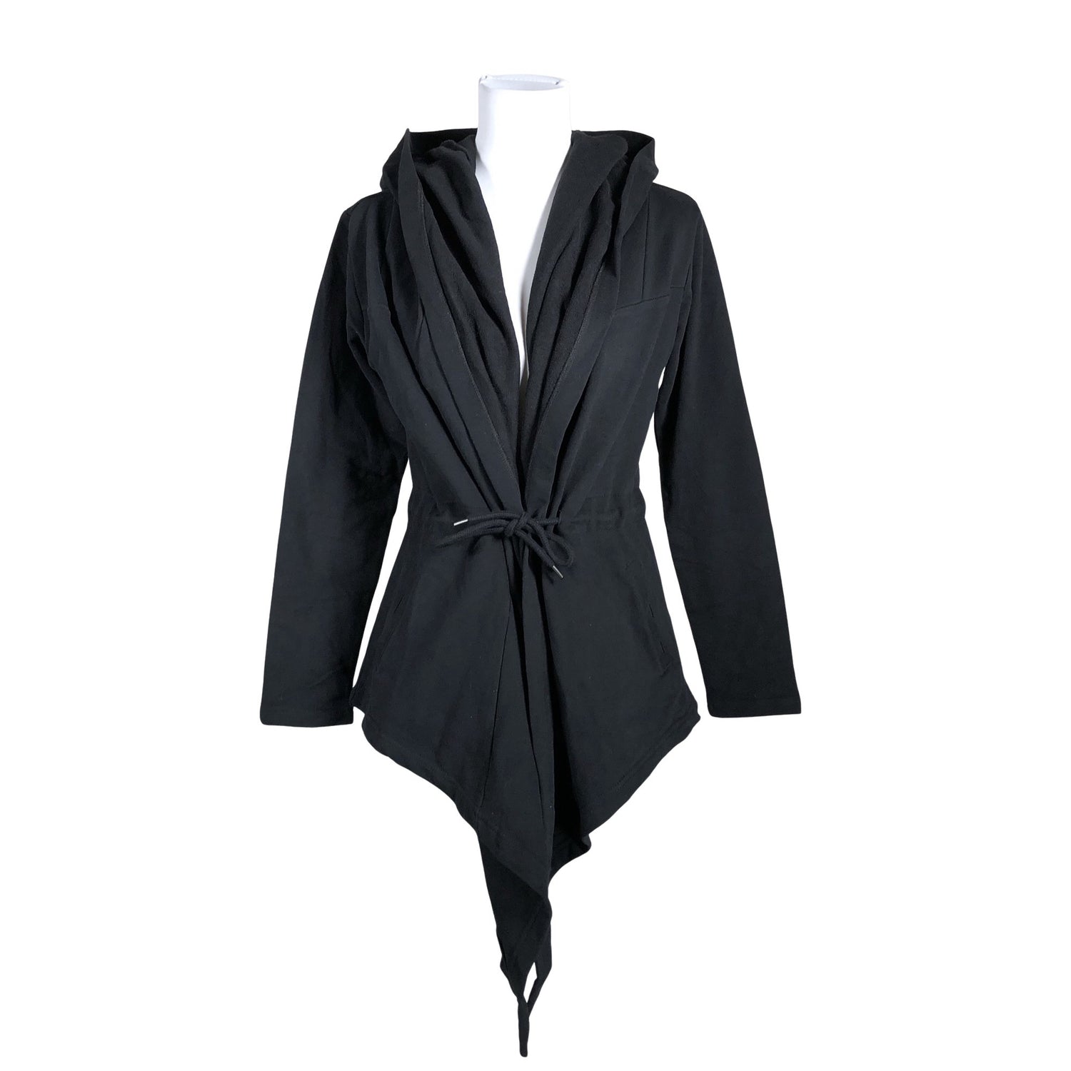 Avonainen malli. Tuotteessa on huppu.
