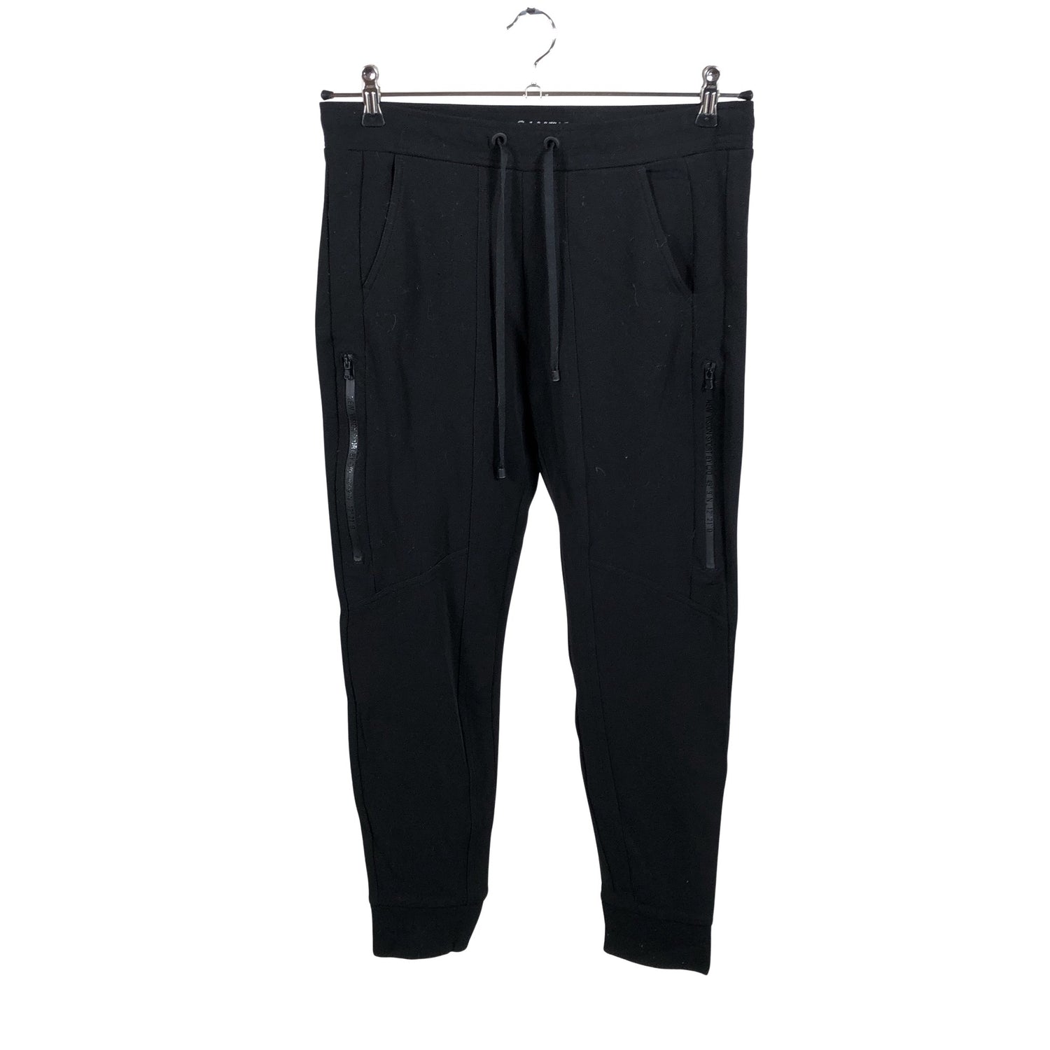 Kiristysnauha vyötäröllä. Vaatteessa on taskut. Materiaali joustaa. Tuotteen pinnassa on hieman pesu-/käyttökulumaa. Yleisilme on siisti.