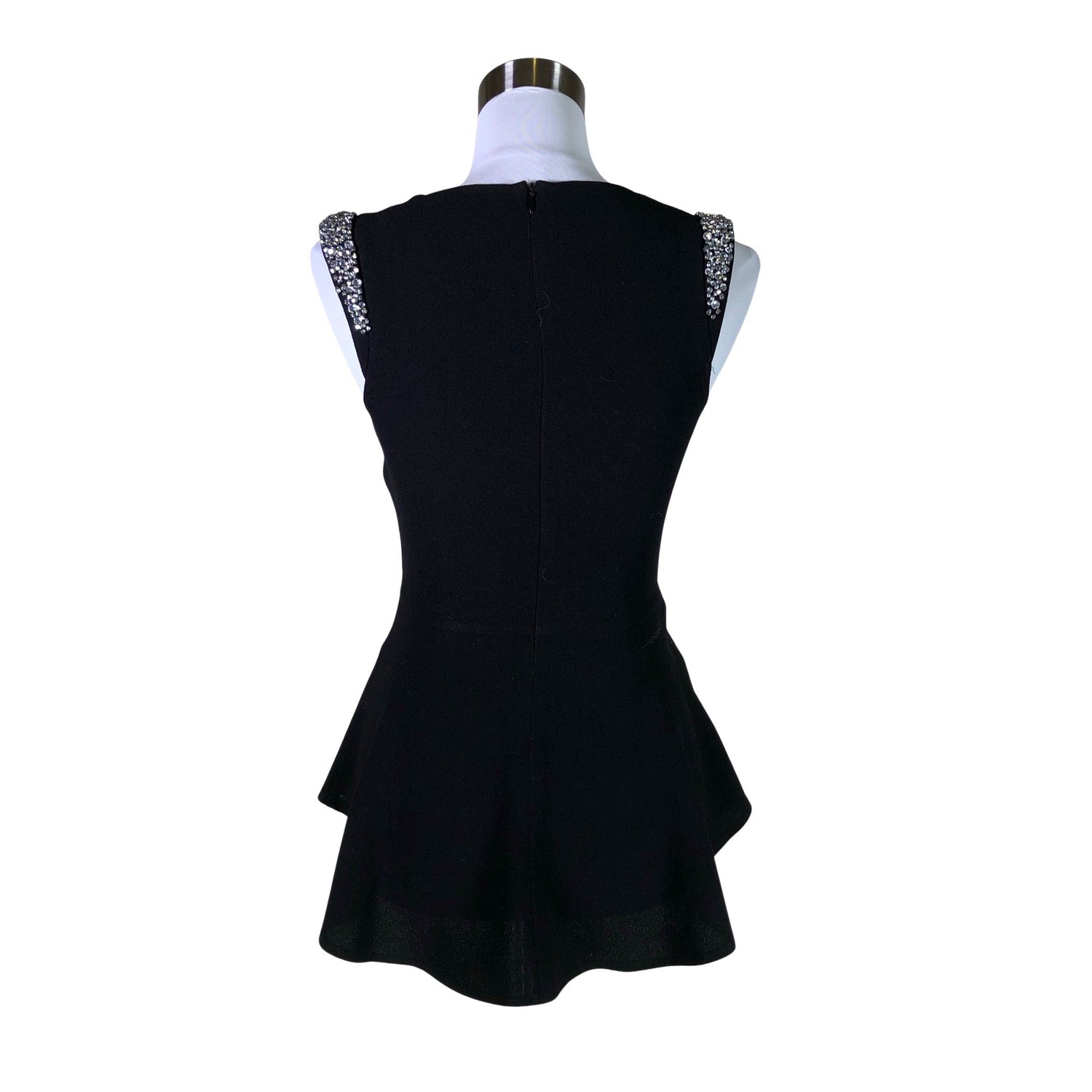Peplum-helma. Epäsymmetrinen helma. Vetoketju takana.