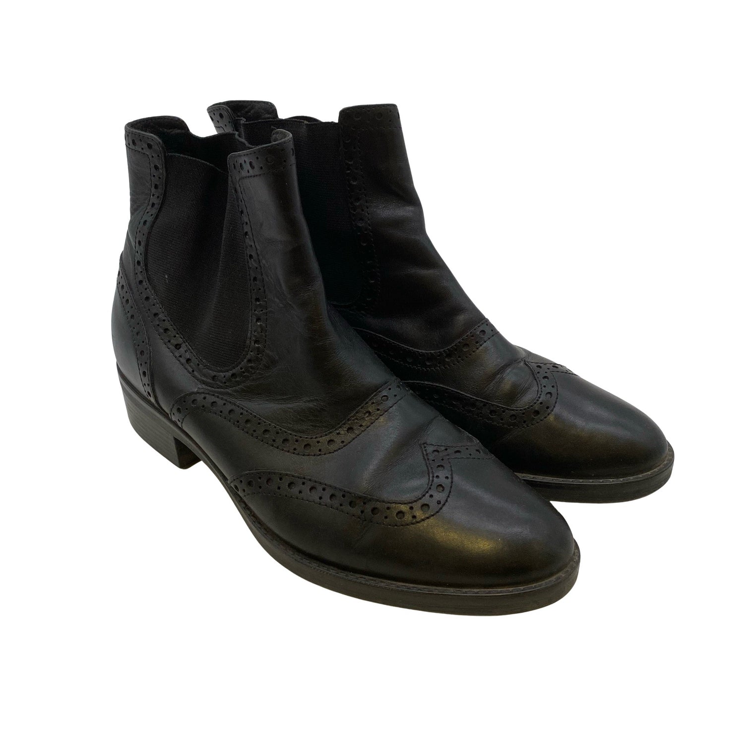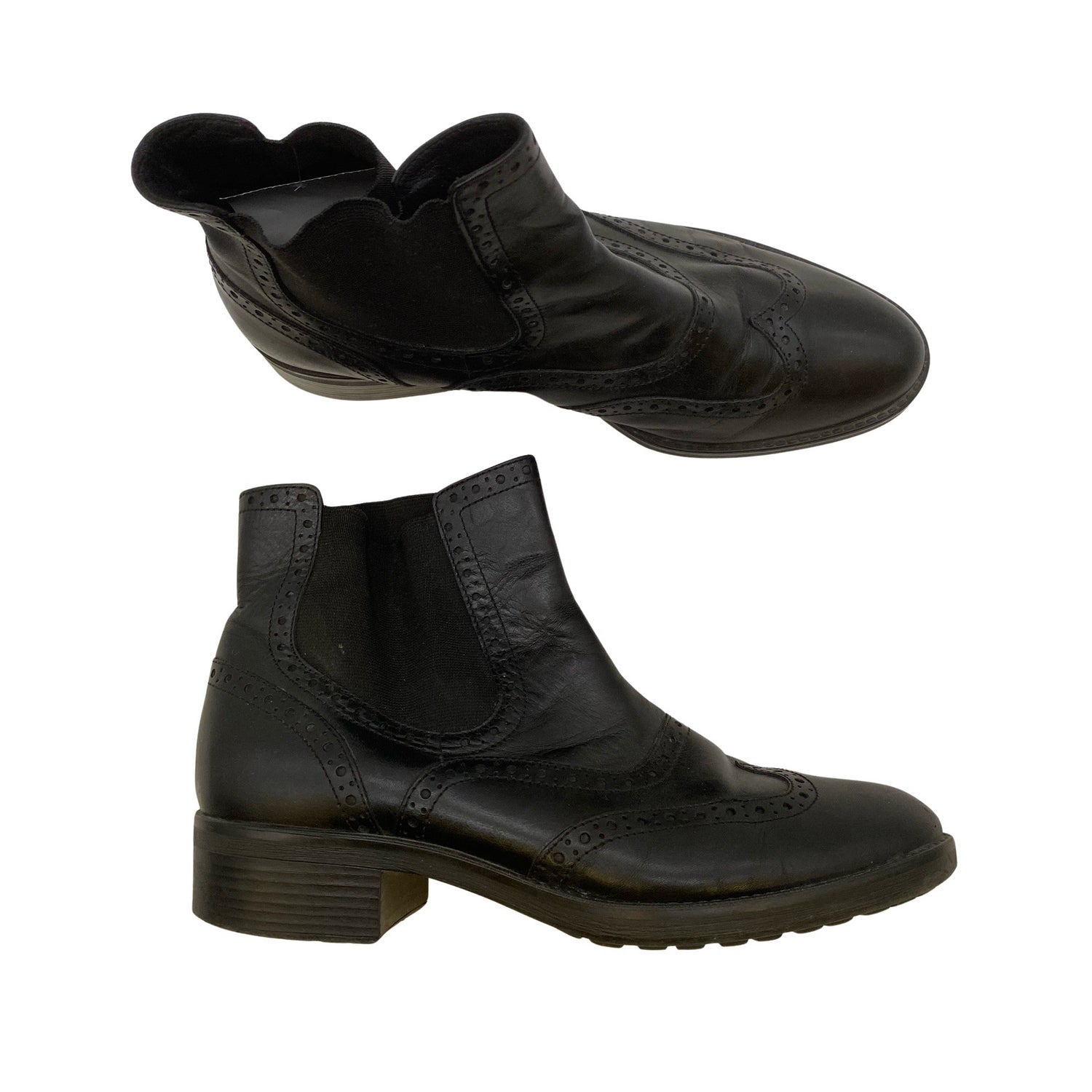 Materiaalitieto puuttuu. Todennäköisesti nahkaa. Varsi joustaa hieman. Tuotteen pinnassa on hieman pesu-/käyttökulumaa. Yleisilme on siisti.