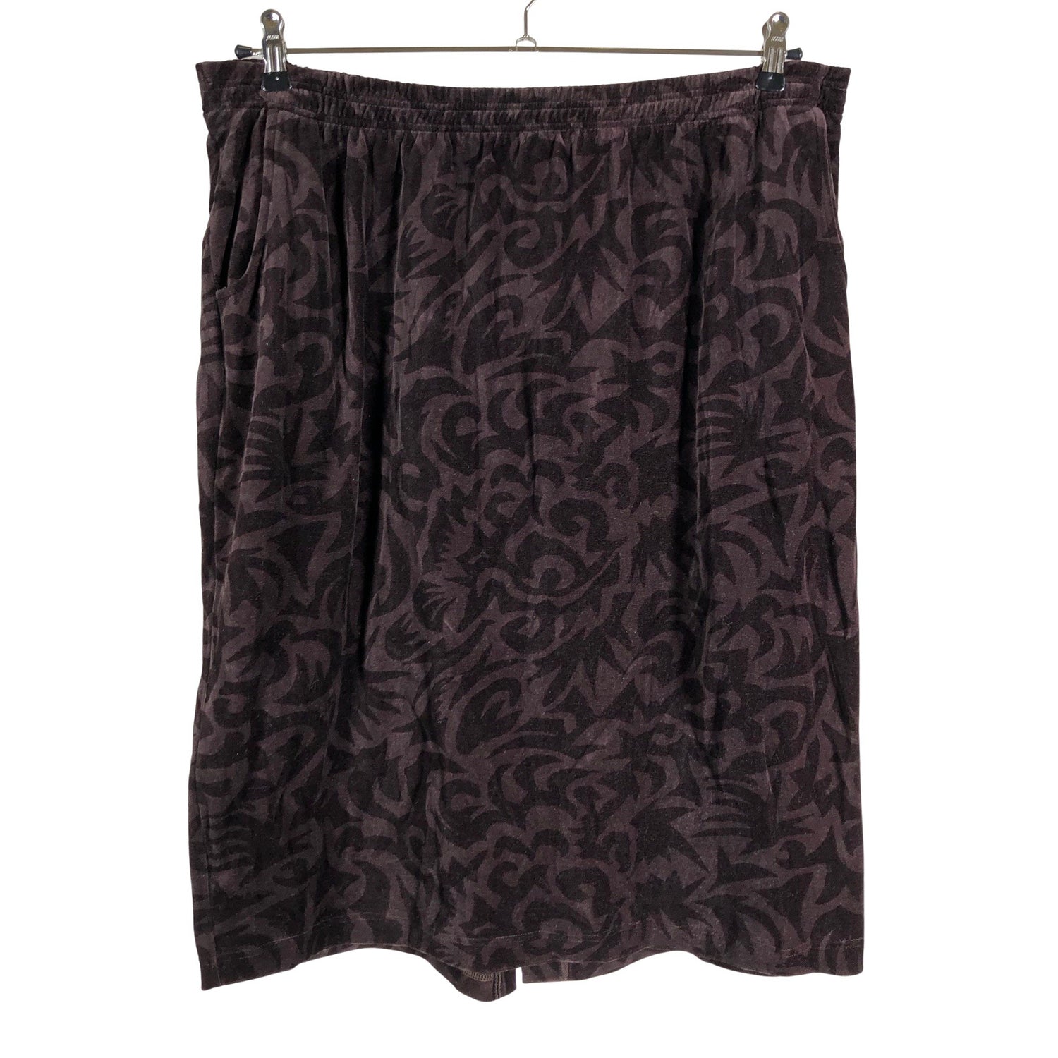 Velouria. Made in Finland. Joustava vyötärö. Vaatteessa on taskut. Tuotteen pinnassa on hieman pesu-/käyttökulumaa. Yleisilme on siisti.