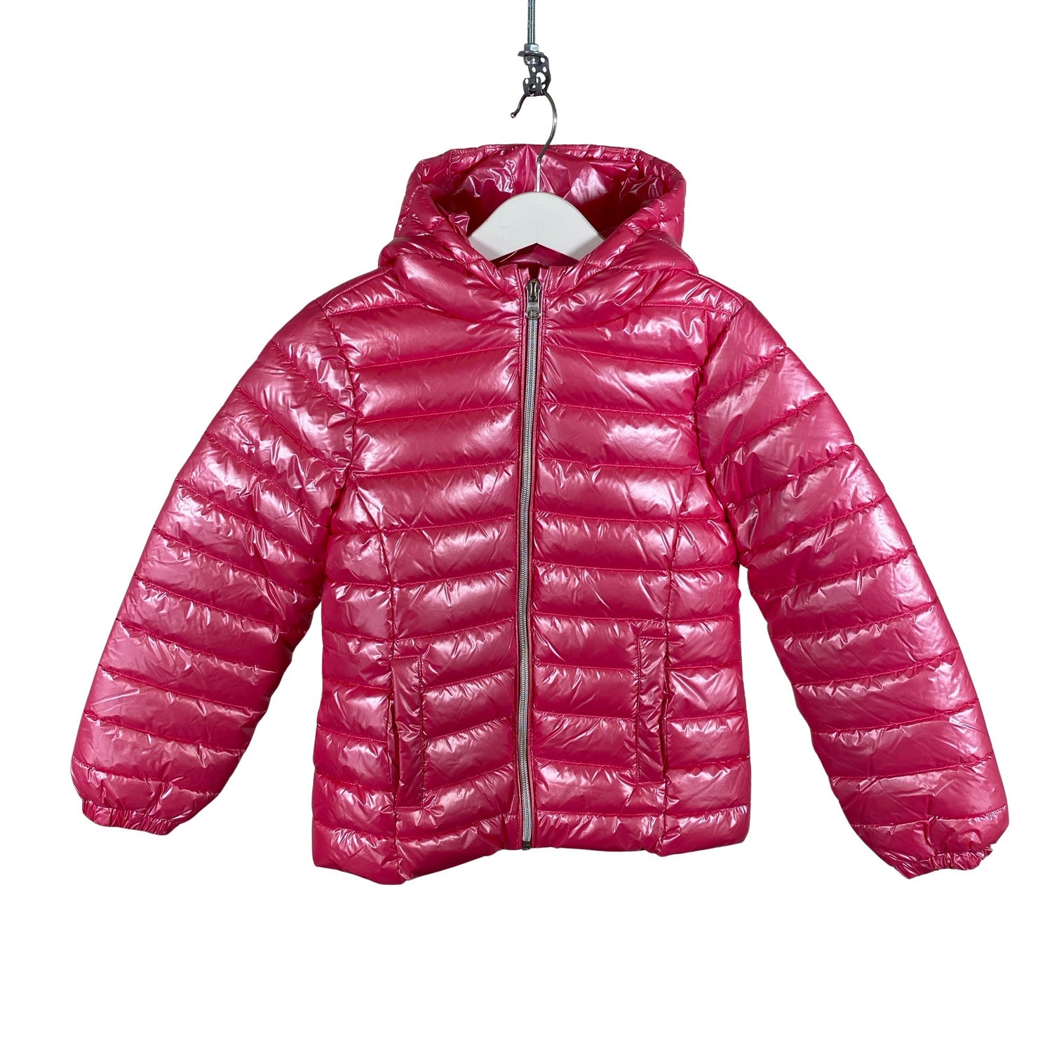 Tuotteen pinta on kiiltävä. Vaatteessa on taskut.