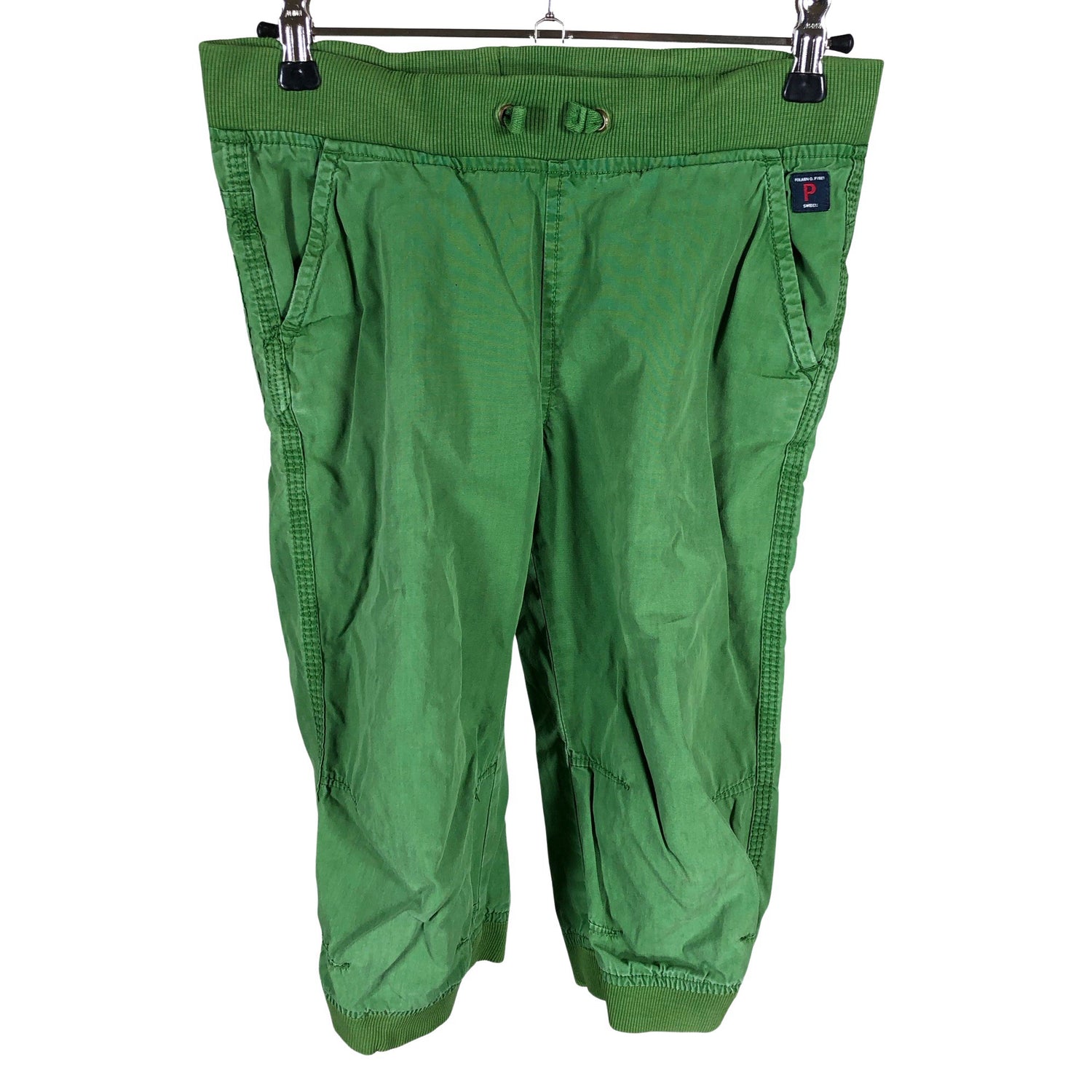 Kiristysnauha vyötäröllä. Puuvillaa. Tuotteen pinnassa on hieman pesu-/käyttökulumaa. Yleisilme on siisti.