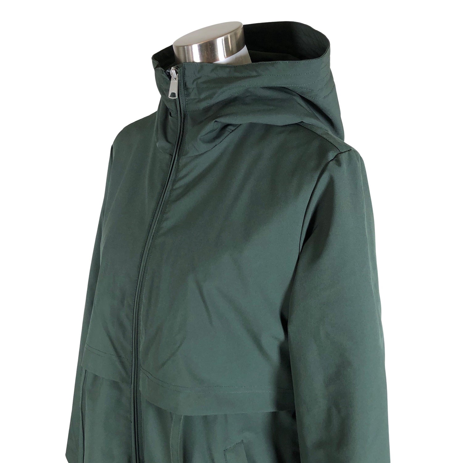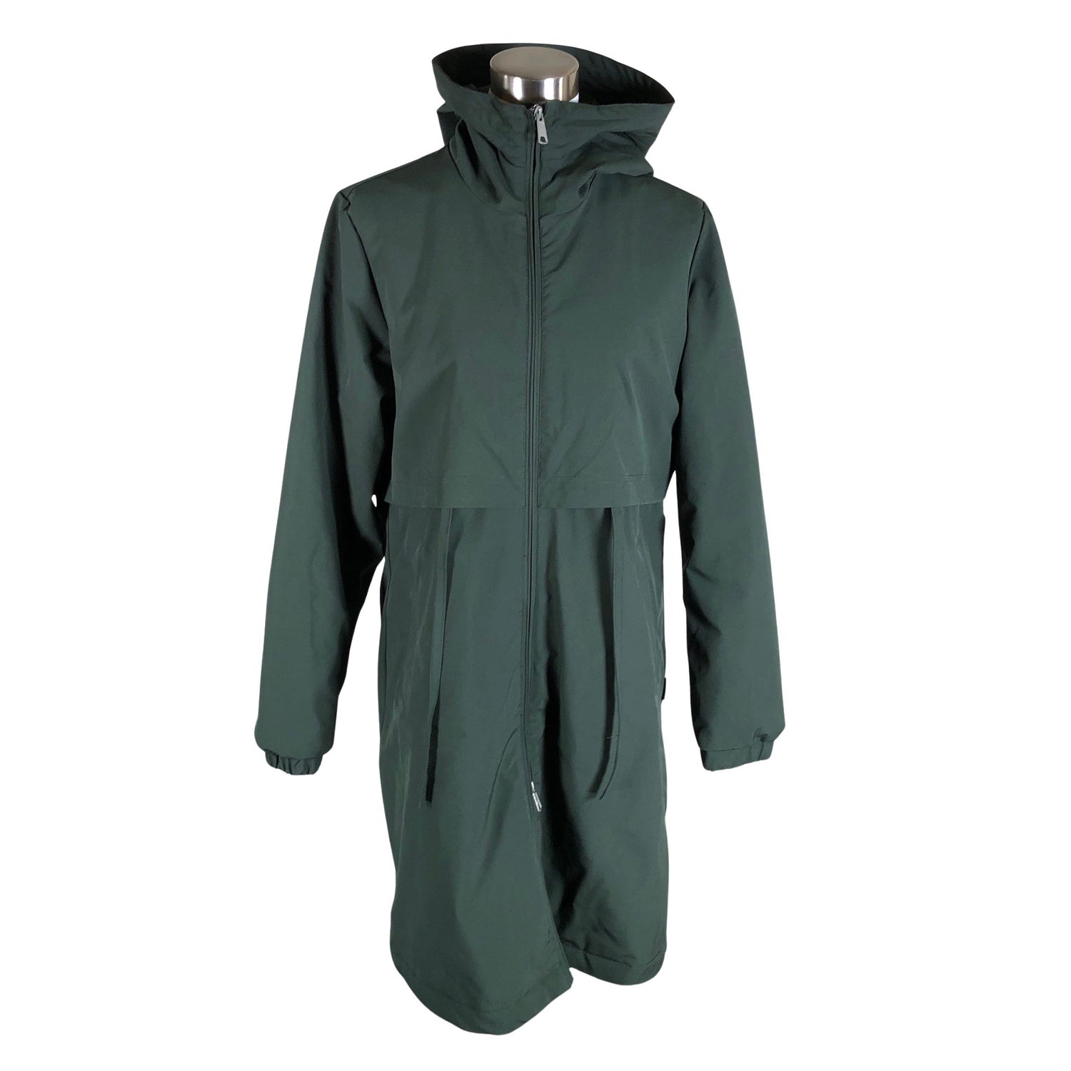 Malli: Laina. Pitkä malli. Korkea kaulus. Kiristysnauha vyötäröllä. Tuotteen taskuissa on vetoketjut. Hihan- ja/tai lahkeensuissa on aavistus kulumaa. Tuote on muilta osin hyvässä kunnossa.