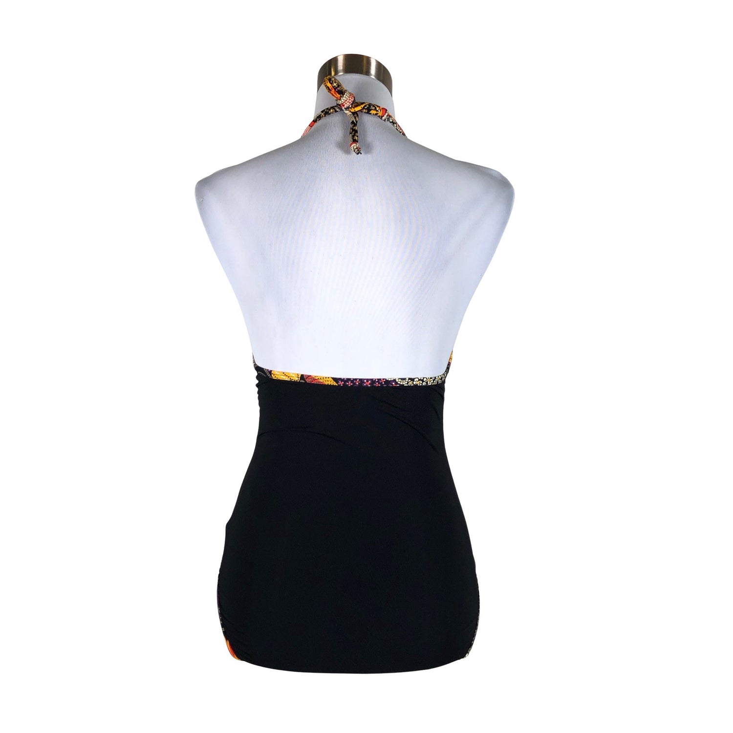 Materiaali joustaa. Halterneck-malli.