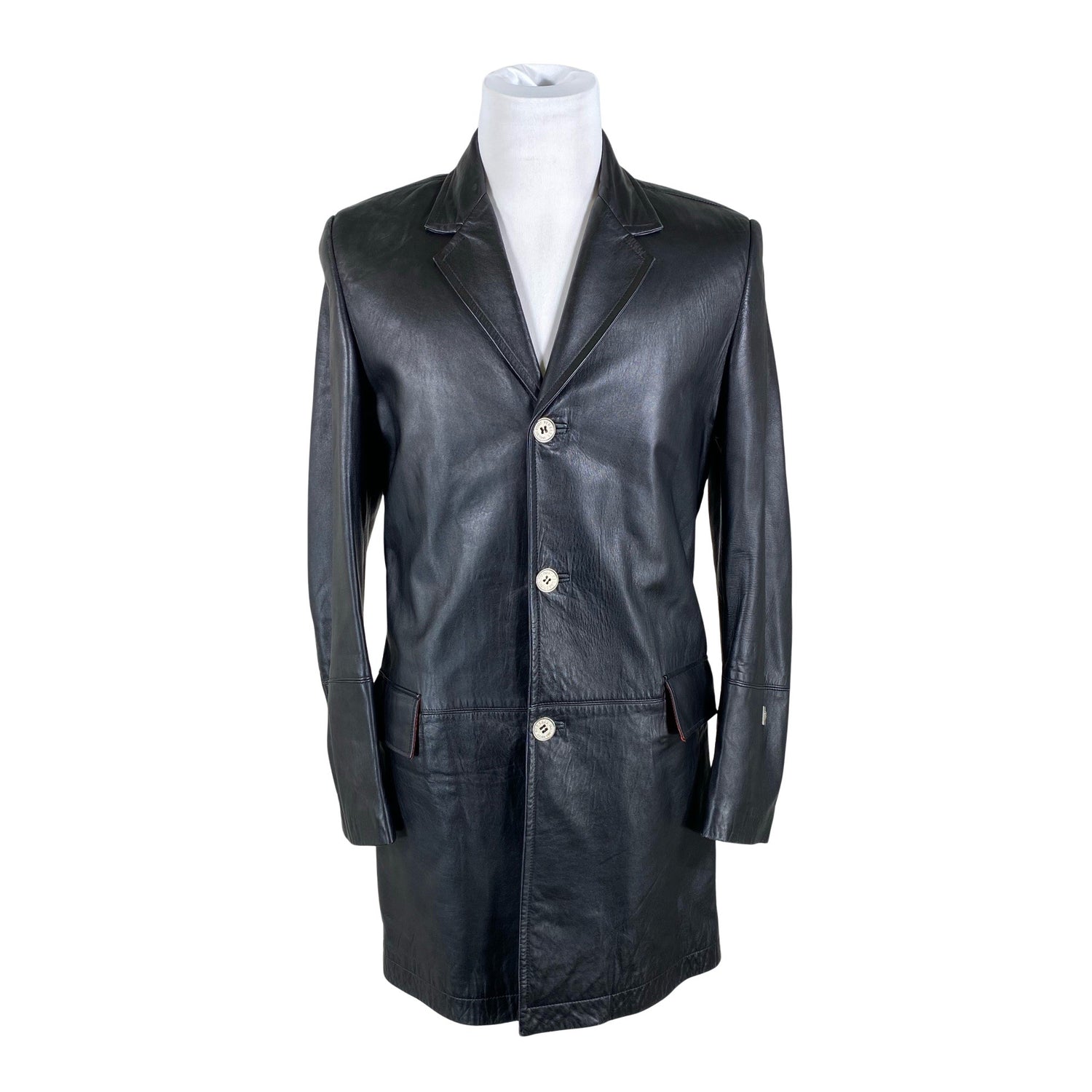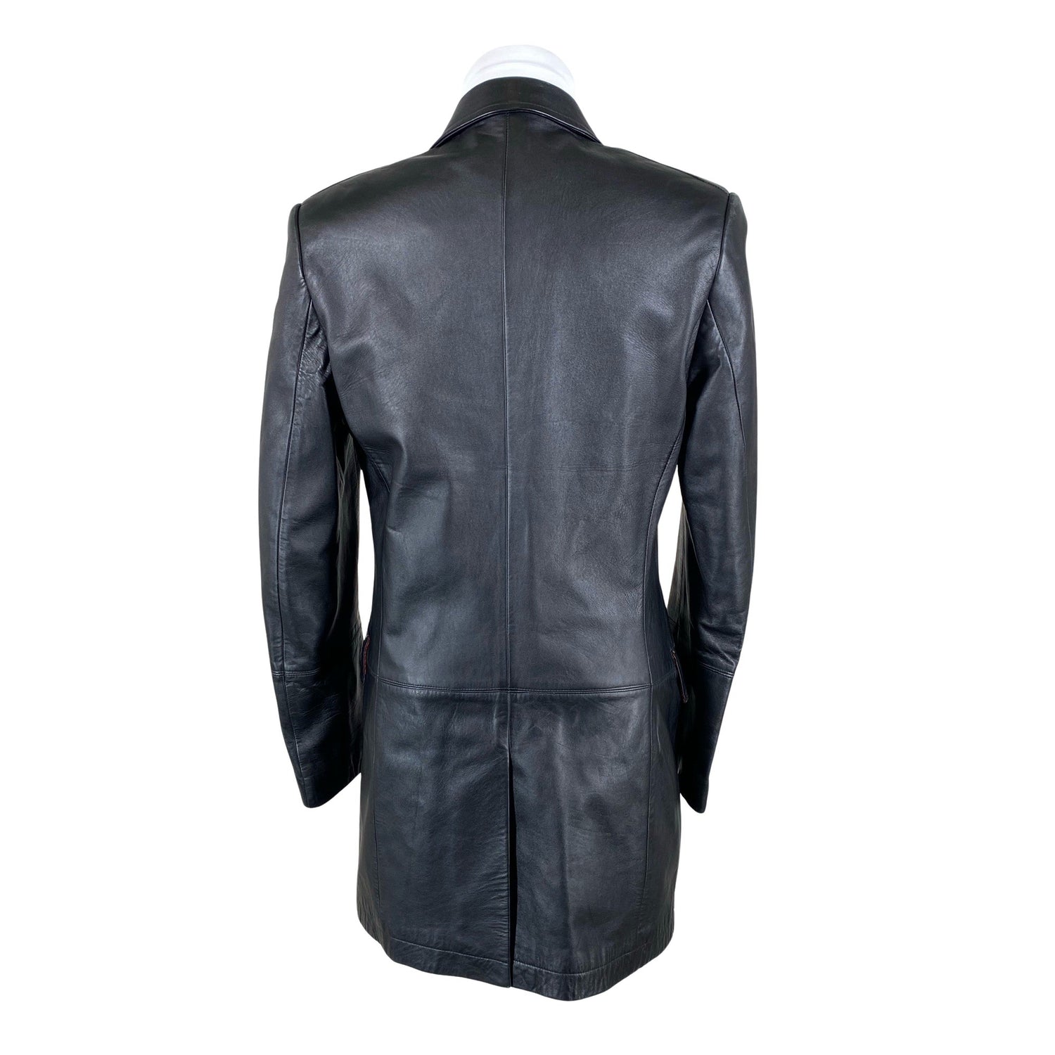 Pehmeää nahkaa. Tuotteessa on ohut vuori. Kauluksessa on tahra. Tuote on muilta osin hyvässä kunnossa.