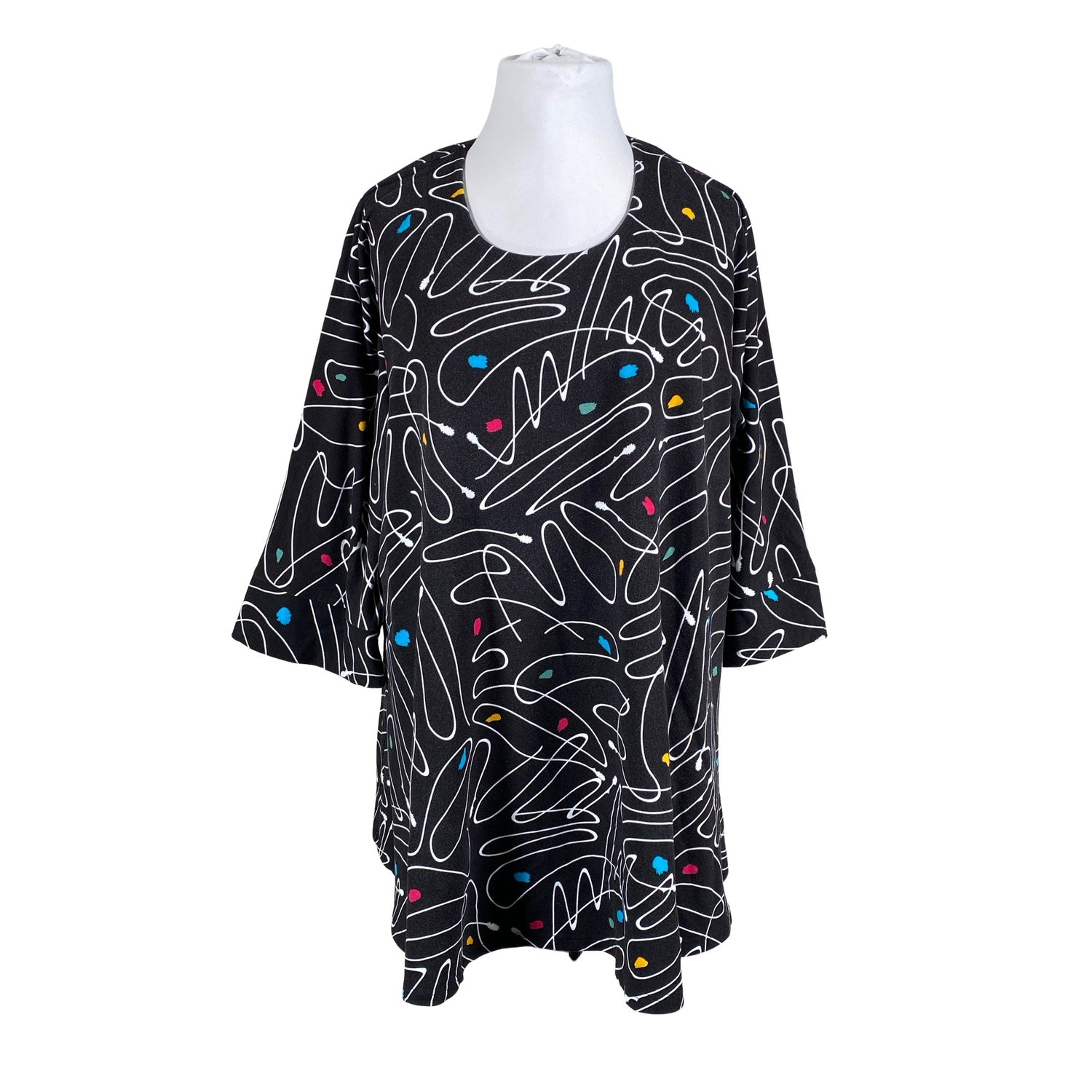 Oversized. Materiaali joustaa. Tuotteen pinnassa on hieman pesu-/käyttökulumaa. Yleisilme on siisti.