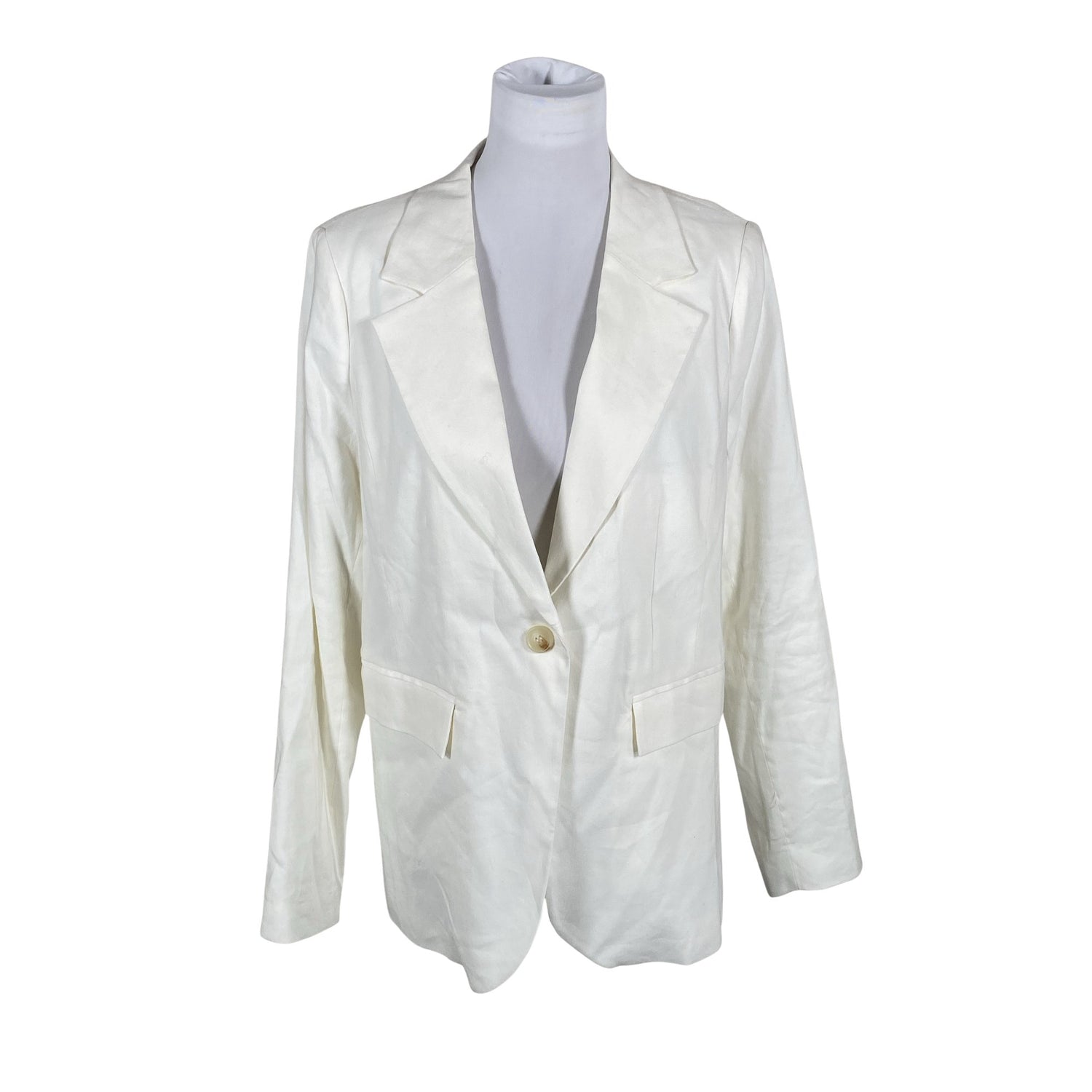Pellavasekoitetta. Olkatoppaukset. Tuotteen pinnassa on muutama haalea tahra. Tuotteen pinnassa on aavistus pesu-/käyttökulumaa. Yleisilme on siisti.