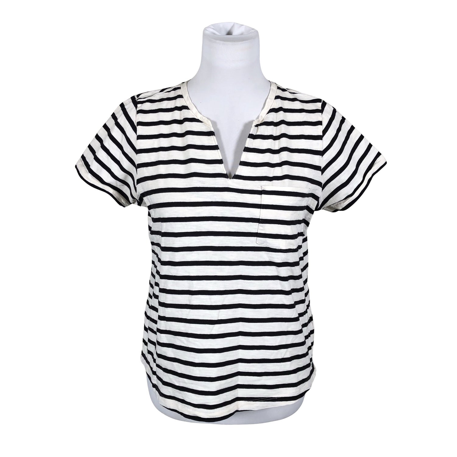 We do not accept products for sale that have even a small hole, a broken seam, a yellowed collar, or a similar defect. We accept clothing in usable condition for sale at our discretion and only from brands that we know will sell even in usable condition.