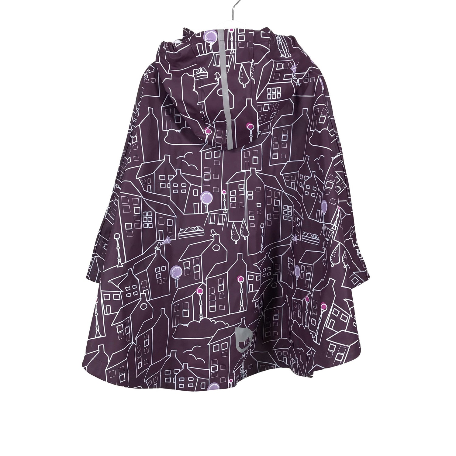 Sadeviitta. Tuotteessa on heijastavia yksityiskohtia. Irrotettava huppu.
