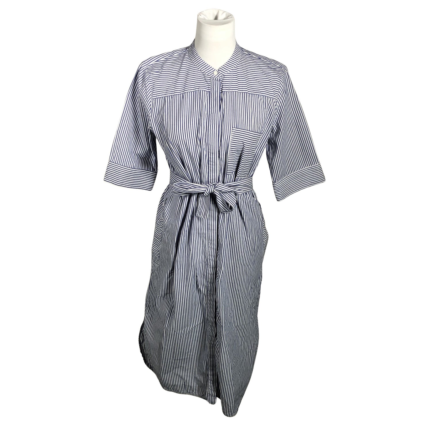Puuvillaa. Edessä napit. Vajaamittaiset hihat. Tuotteeseen kuuluu vyö.