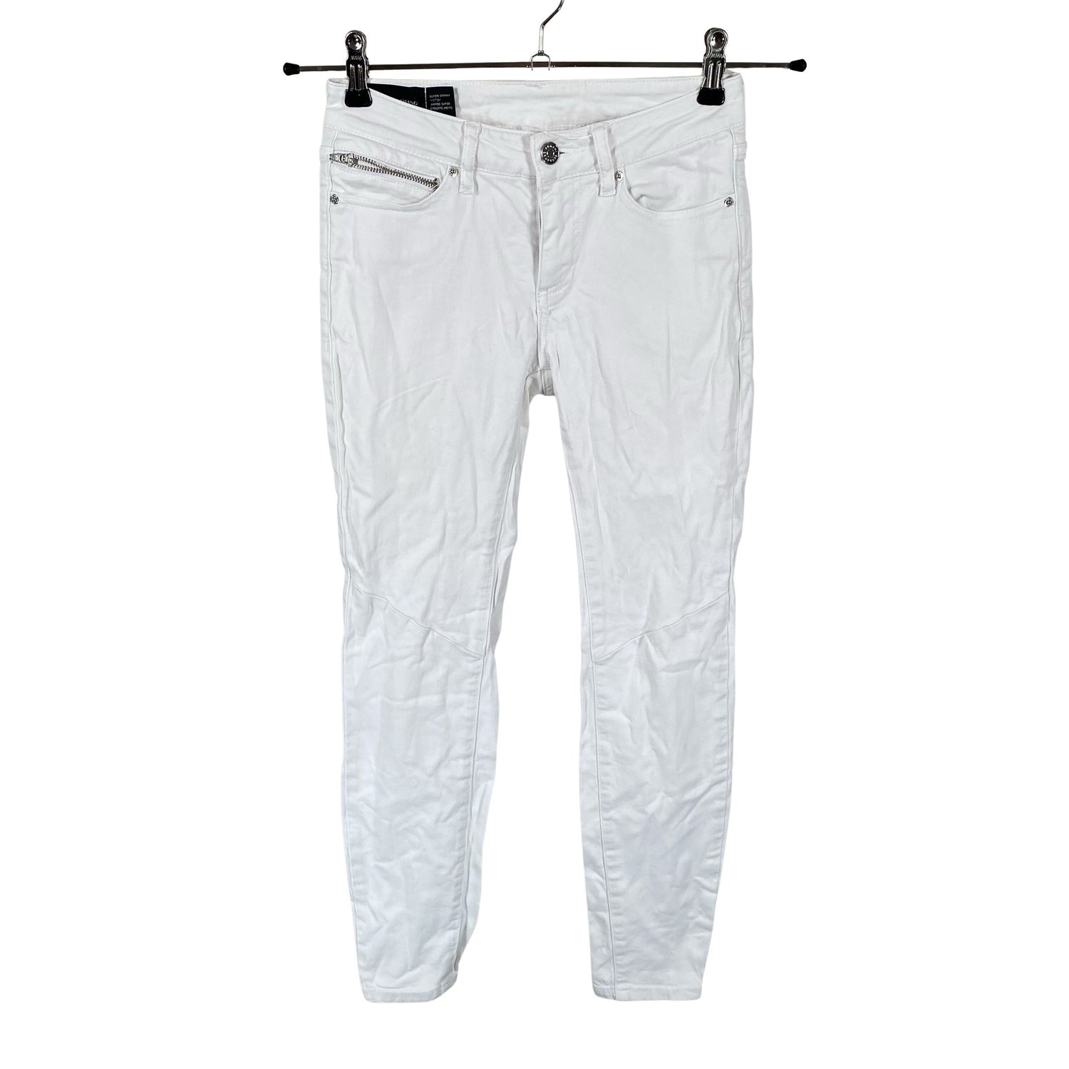Malli: Super Skinny. Materiaali joustaa hieman. Tuotteen pinnassa on aavistus pesu-/käyttökulumaa. Yleisilme on siisti.