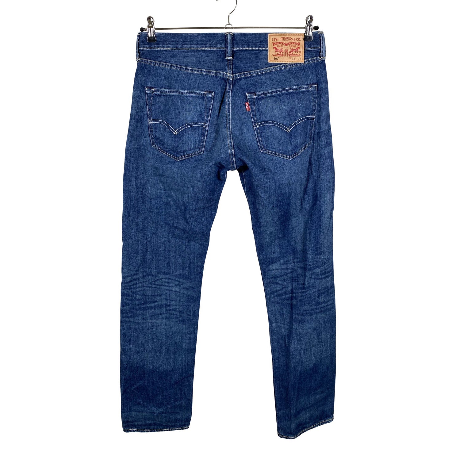 Malli: 501. Tuotteen pinnassa on aavistus pesu-/käyttökulumaa. Yleisilme on siisti.